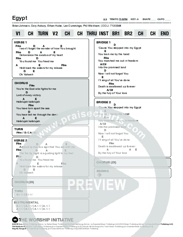 Download the PDF Chord Charts for Egypt by The Worship Initiative, from the album Sunday Setlist #4.