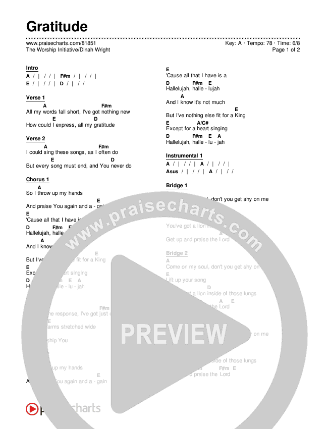 Gratitude Chords PDF (The Worship Initiative / Dinah Wright)
