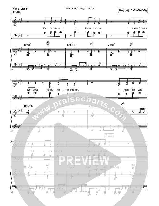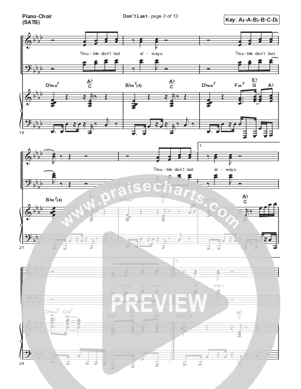 Download the PDF sheet music for Don't Last by VaShawn Mitchell, from the album My Songbook.
