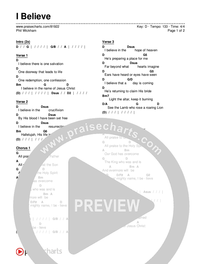 I Believe Chords PDF (Phil Wickham)