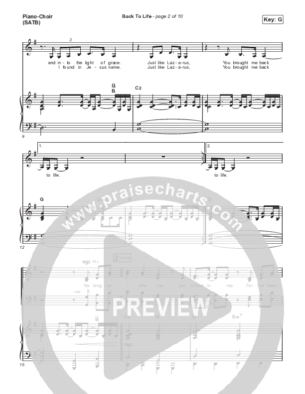 Download the PDF sheet music for Back To Life by Phil Wickham, from the album I Believe. This song was arranged by Grant Wall in the key of F, G.
