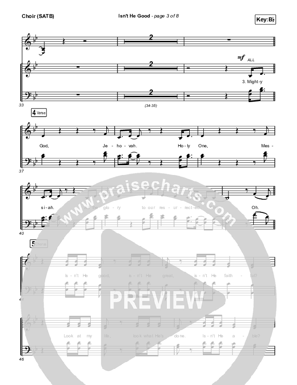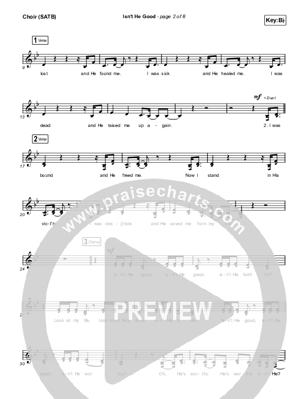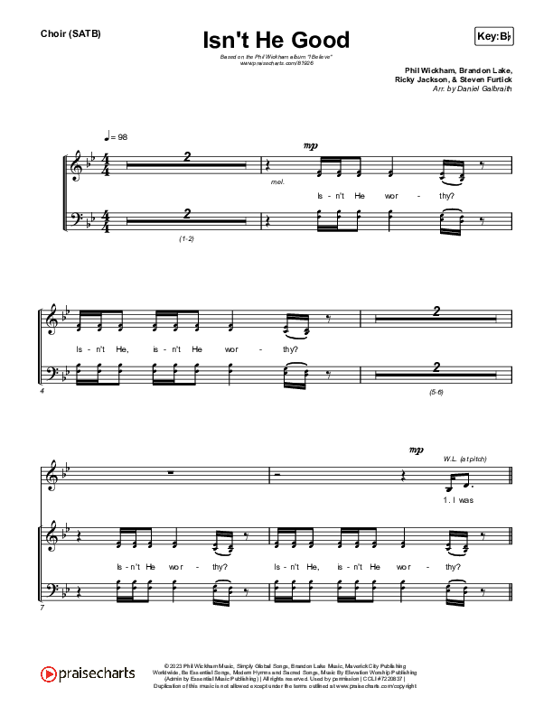 Download the Choir Sheet for Isn't He Good by Phil Wickham, from the album I Believe. This song was arranged by Daniel Galbraith in the key of A, Bb.