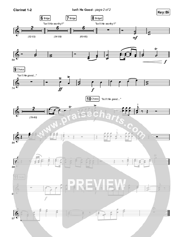 Download the Clarinet sheet music for Isn't He Good by Phil Wickham, from the album I Believe. This song was arranged by Daniel Galbraith in the key of A, Bb.