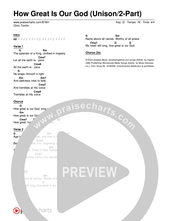 How Great Is Our God (Unison/2-Part) Chords PDF (Chris Tomlin / Arr. Luke Gambill / Orch. Mason Brown)