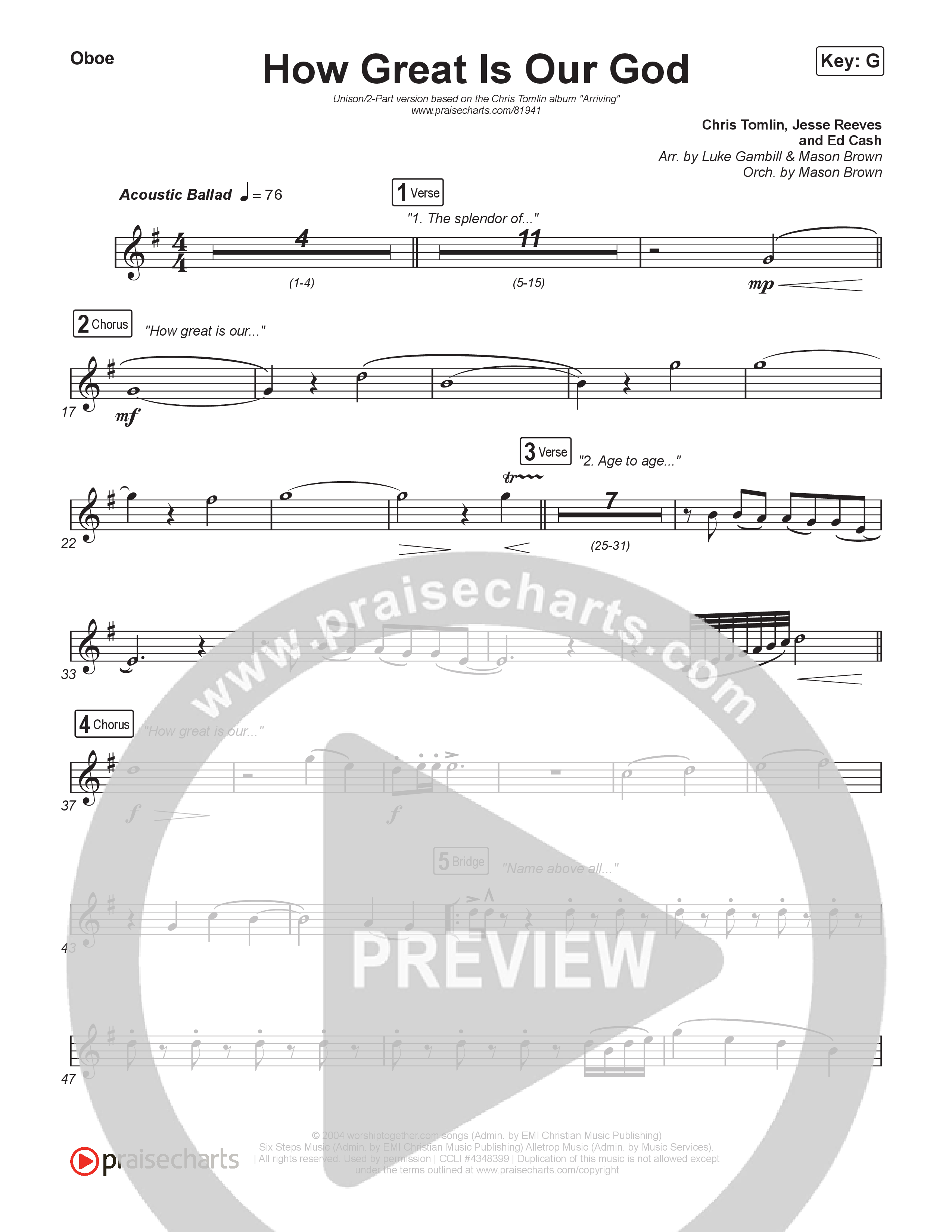 Download the Orchestration wind parts for How Great Is Our God (Unison/2-Part) by Chris Tomlin / Arr. Luke Gambill / Orch. Mason Brown, from the album Arriving. This song was arranged by Luke Gambill / Mason Brown in the key of G.