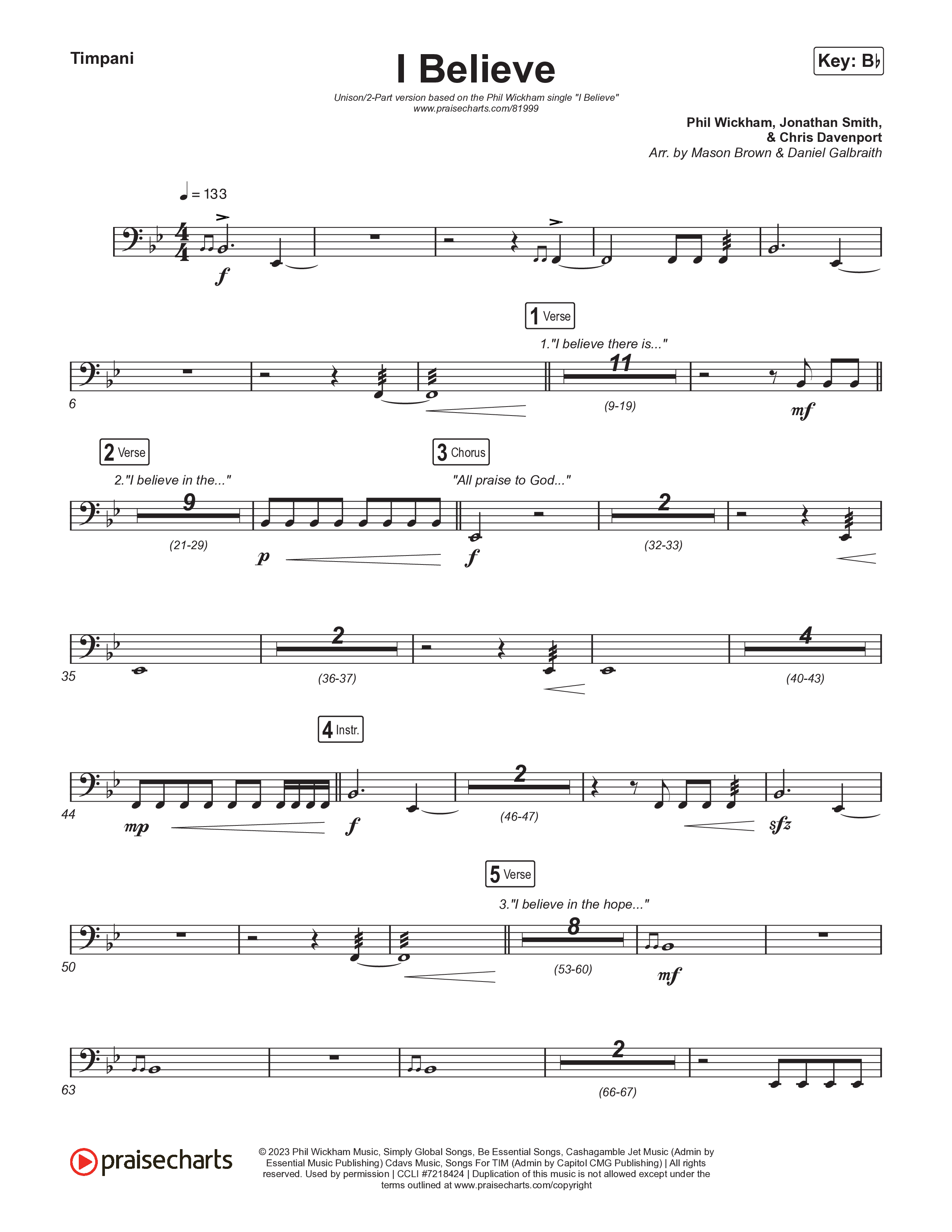 Download the Timpani sheet music for I Believe (Unison/2-Part) by Phil Wickham, from the album I Believe. This song was arranged by Daniel Galbraith in the key of Bb.