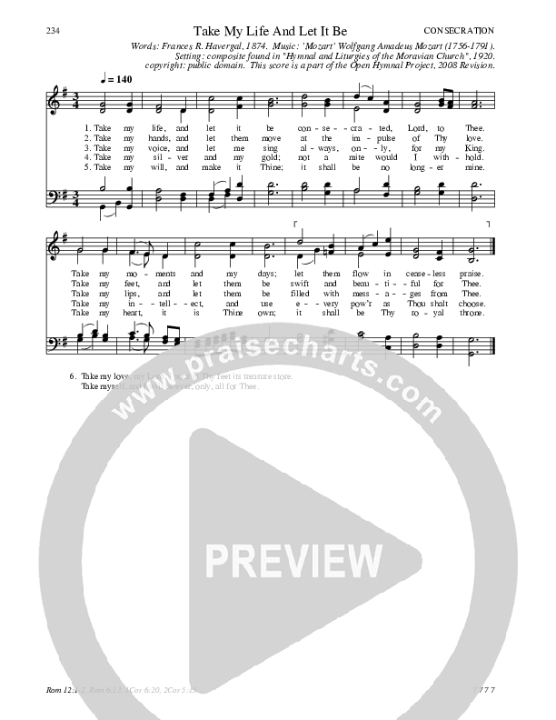 Take My Life And Let It Be Hymn Sheet (Traditional Hymn)