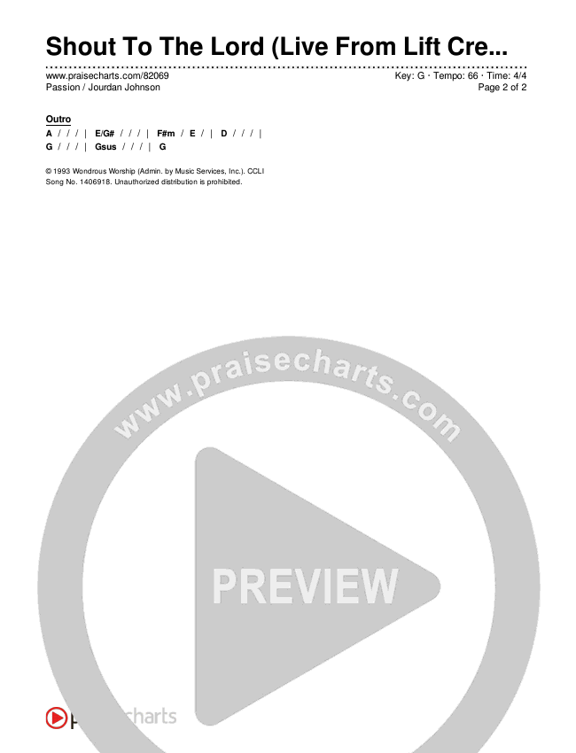 Download the PDF Chord Charts for Shout To The Lord (Live From Lift Creative Conference) by Passion / Jourdan Johnson, from the album Passion Live From LIFT Creative Conference.