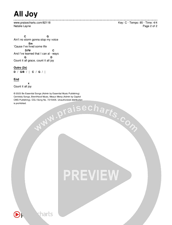 Download the PDF Chord Charts for All Joy by Natalie Layne, from the album All Joy.