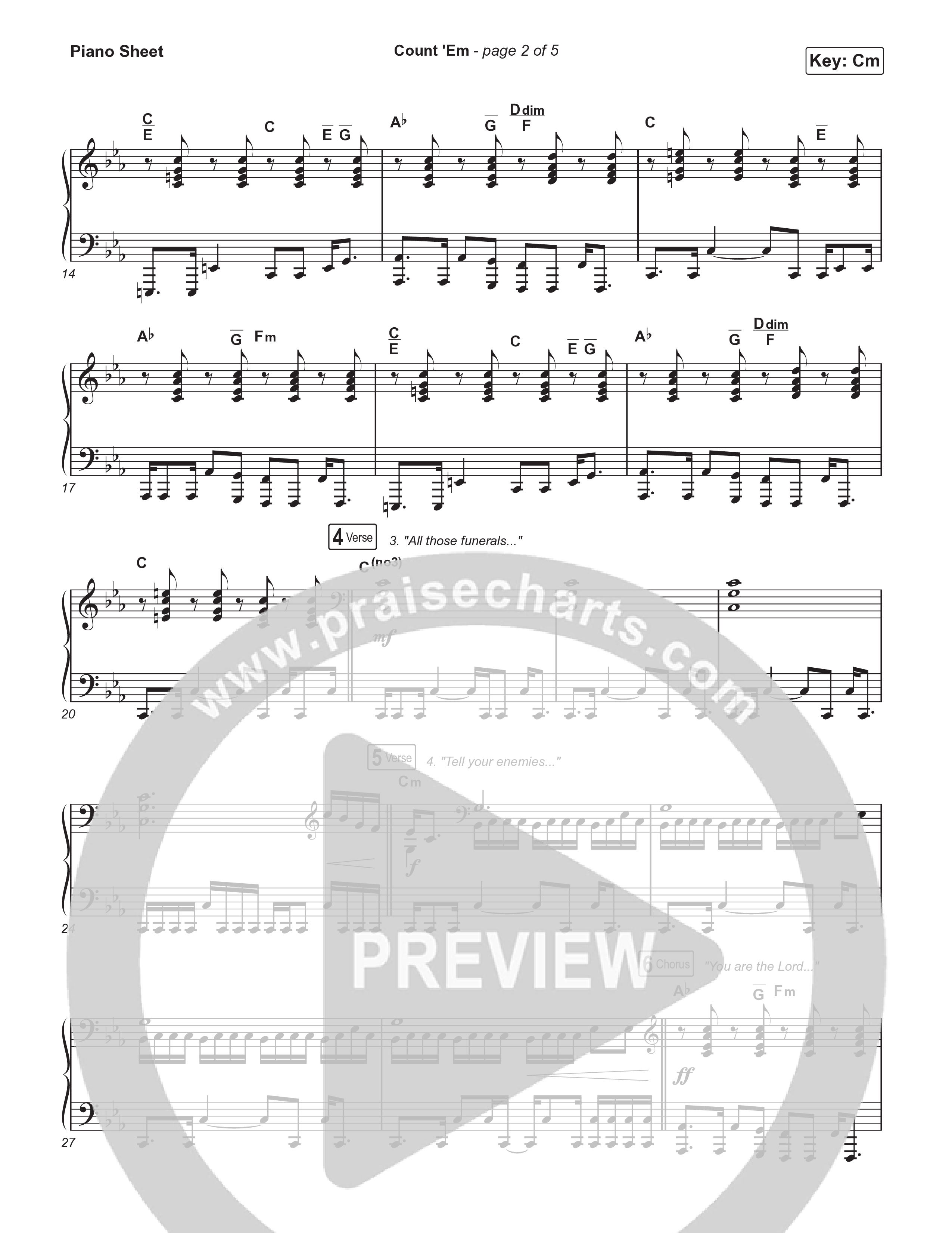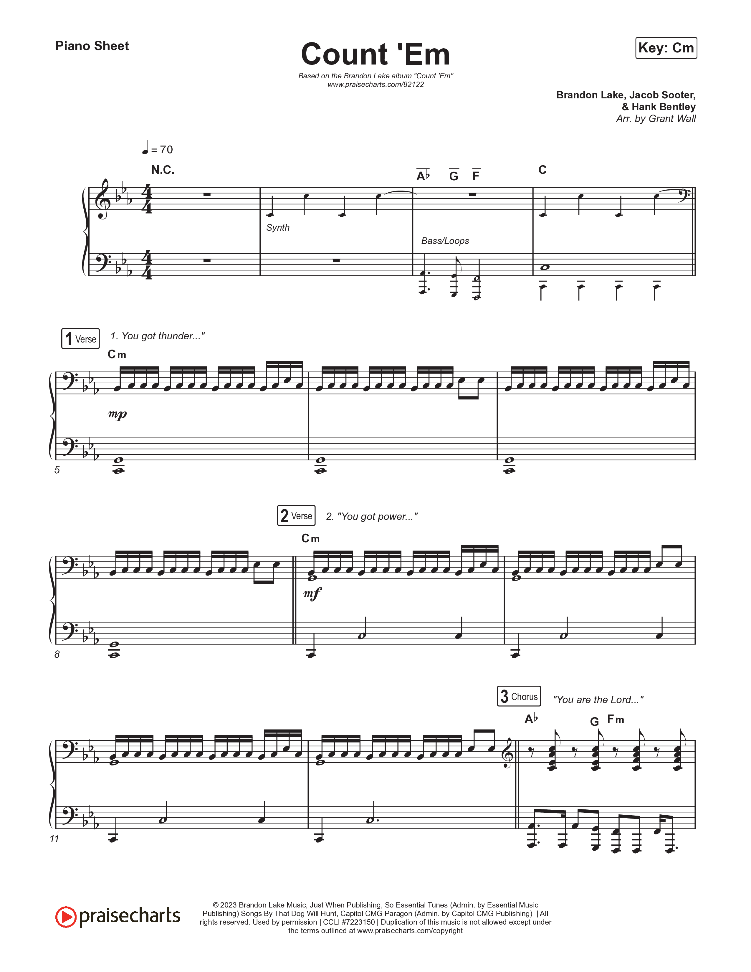 Download the piano sheet for Count 'Em by Brandon Lake, from the album Coat Of Many Colors. This song was arranged by Grant Wall in the key of Bm, Cm.