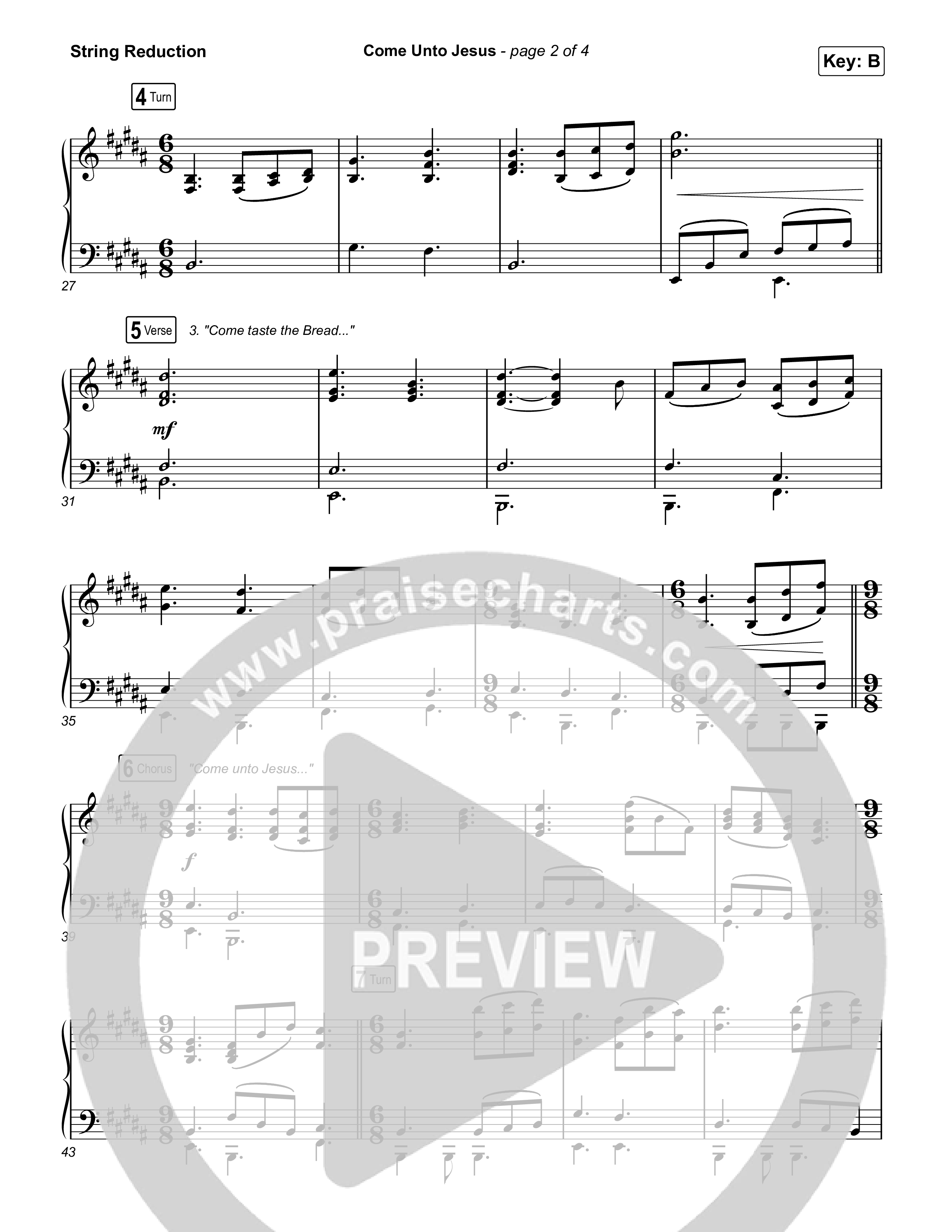 Download the String Reduction sheet music for Come Unto Jesus (Live) by Keith & Kristyn Getty / Laura Story / Jordan Kauflin, from the album Come Unto Jesus. This song was arranged by Grant Wall / Daniel Galbraith in the key of B, C.