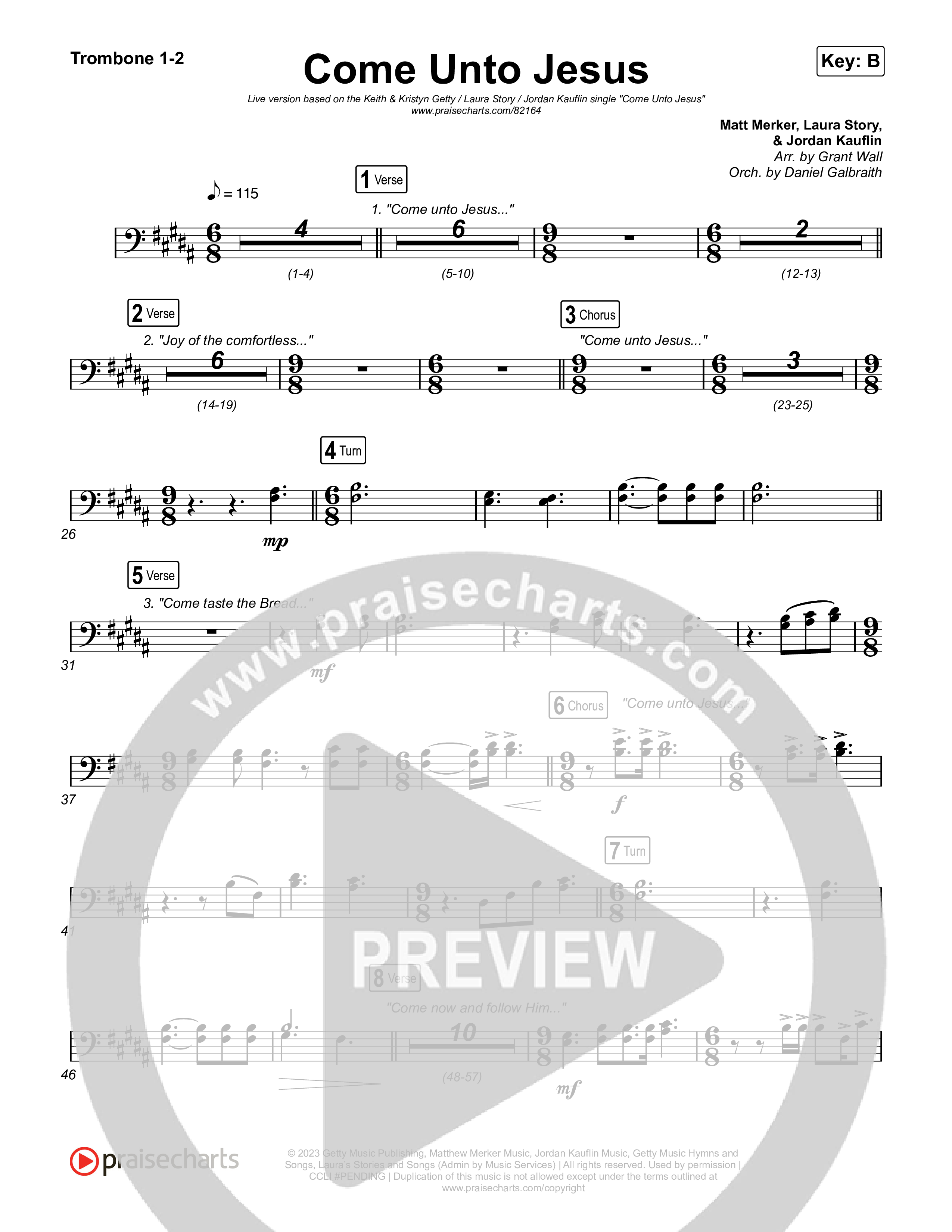 Come Unto Jesus (Live) Trombone Sheet Music PDF (Keith & Kristyn Getty / Laura Story / Jordan Kauflin)