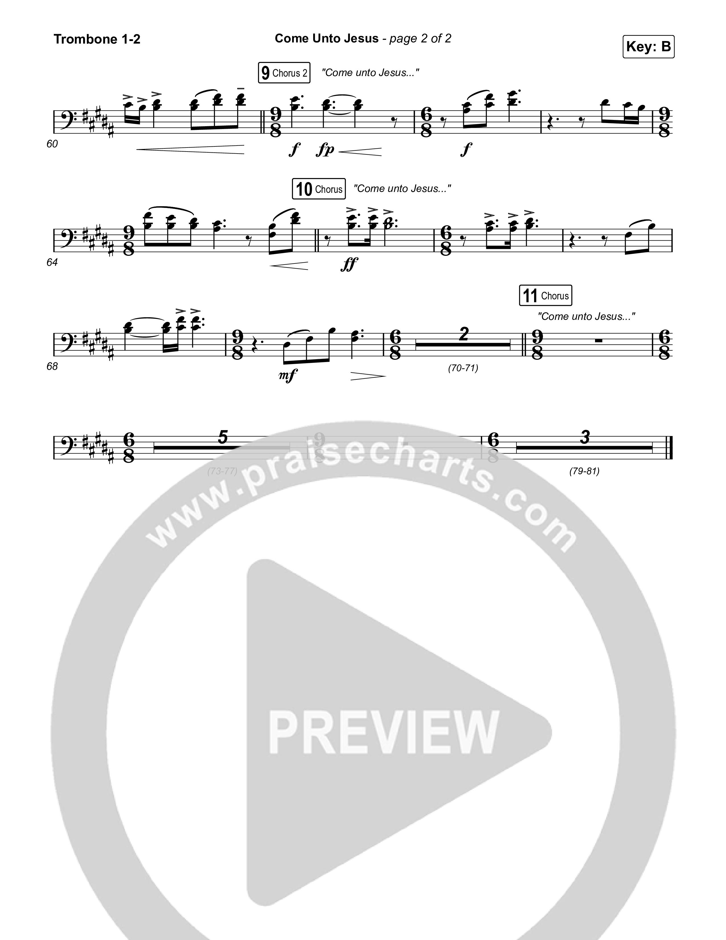Download the Trombone 1,2 sheet music for Come Unto Jesus (Live) by Keith & Kristyn Getty / Laura Story / Jordan Kauflin, from the album Come Unto Jesus. This song was arranged by Grant Wall / Daniel Galbraith in the key of B, C.