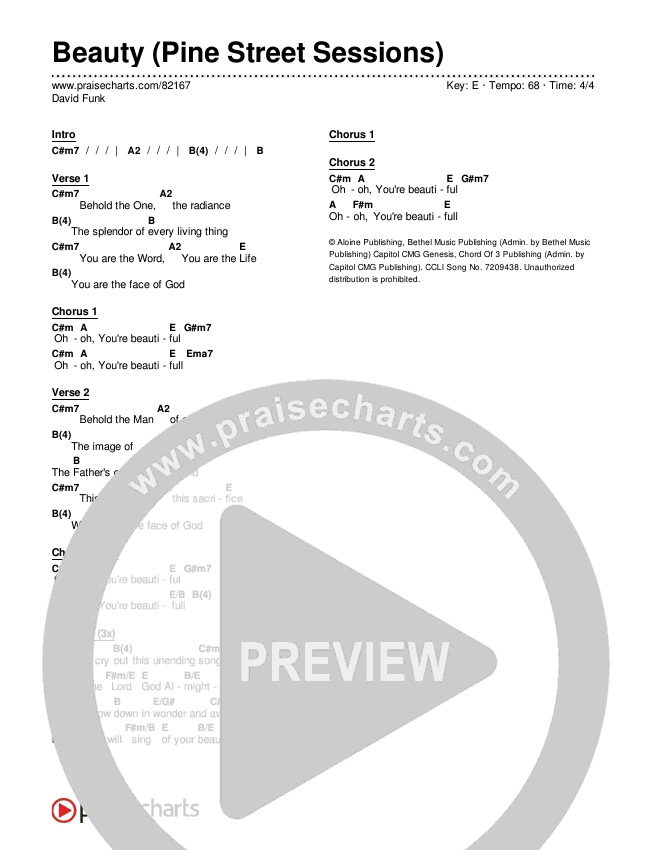 Download the PDF Chord Charts for Beauty (Pine Street Sessions) by David Funk, from the album Beauty.