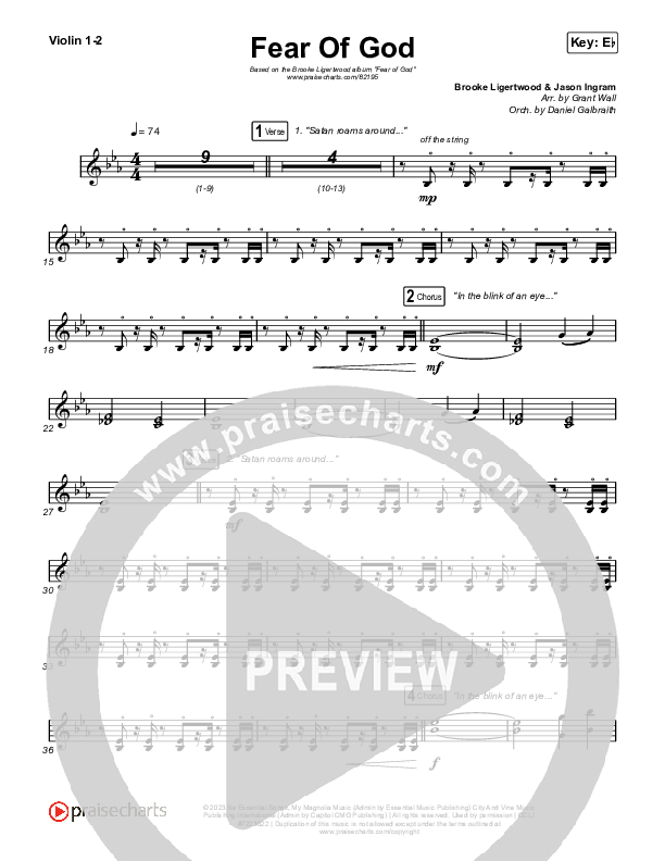 Download the Orchestration string parts for Fear Of God by Brooke Ligertwood, from the album Eight. This song was arranged by Grant Wall / Daniel Galbraith in the key of E, Eb.