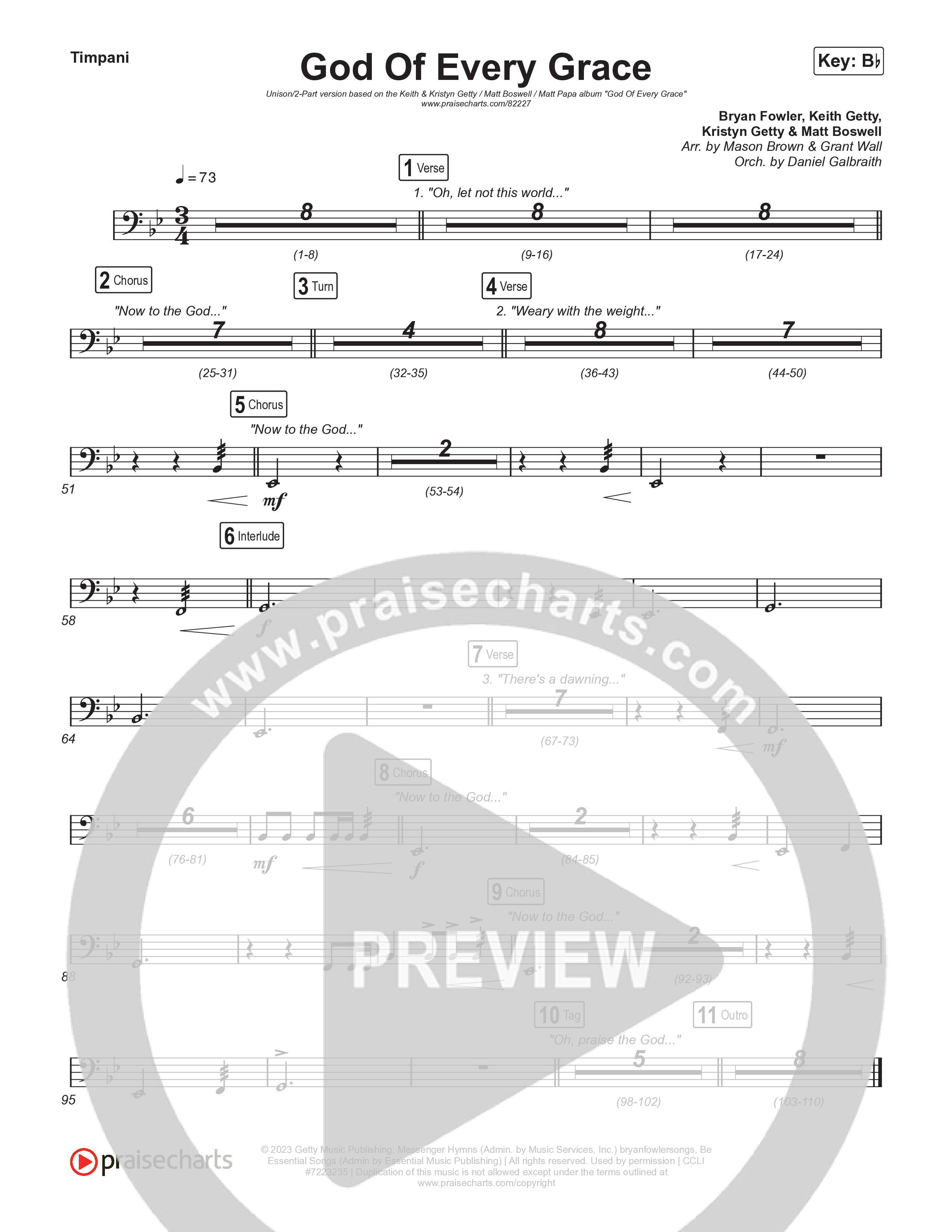 Download the Timpani sheet music for God Of Every Grace (Unison/2-Part) by Keith & Kristyn Getty / Matt Boswell / Matt Papa / Arr. Mason Brown, from the album God Of Every Grace. This song was arranged by Mason Brown / Daniel Galbraith / Grant Wall in the key of Bb.
