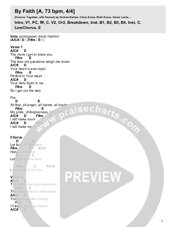 Download the PDF Chord Charts for By Faith by Futures, from the album Together With Heaven.