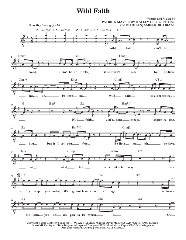 Download the sheet music for Wild Faith by Patrick Mayberry / kalley, from the album Wild Faith.