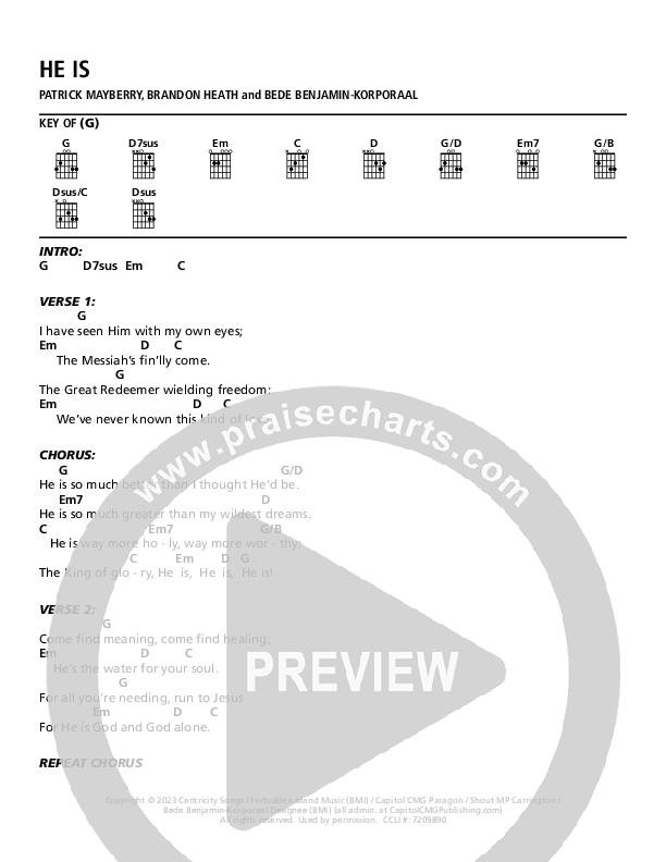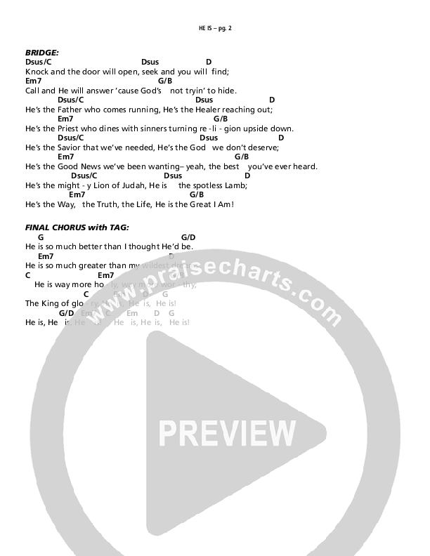 Download the PDF Chord Charts for He Is by Patrick Mayberry, from the album Wild Faith.
