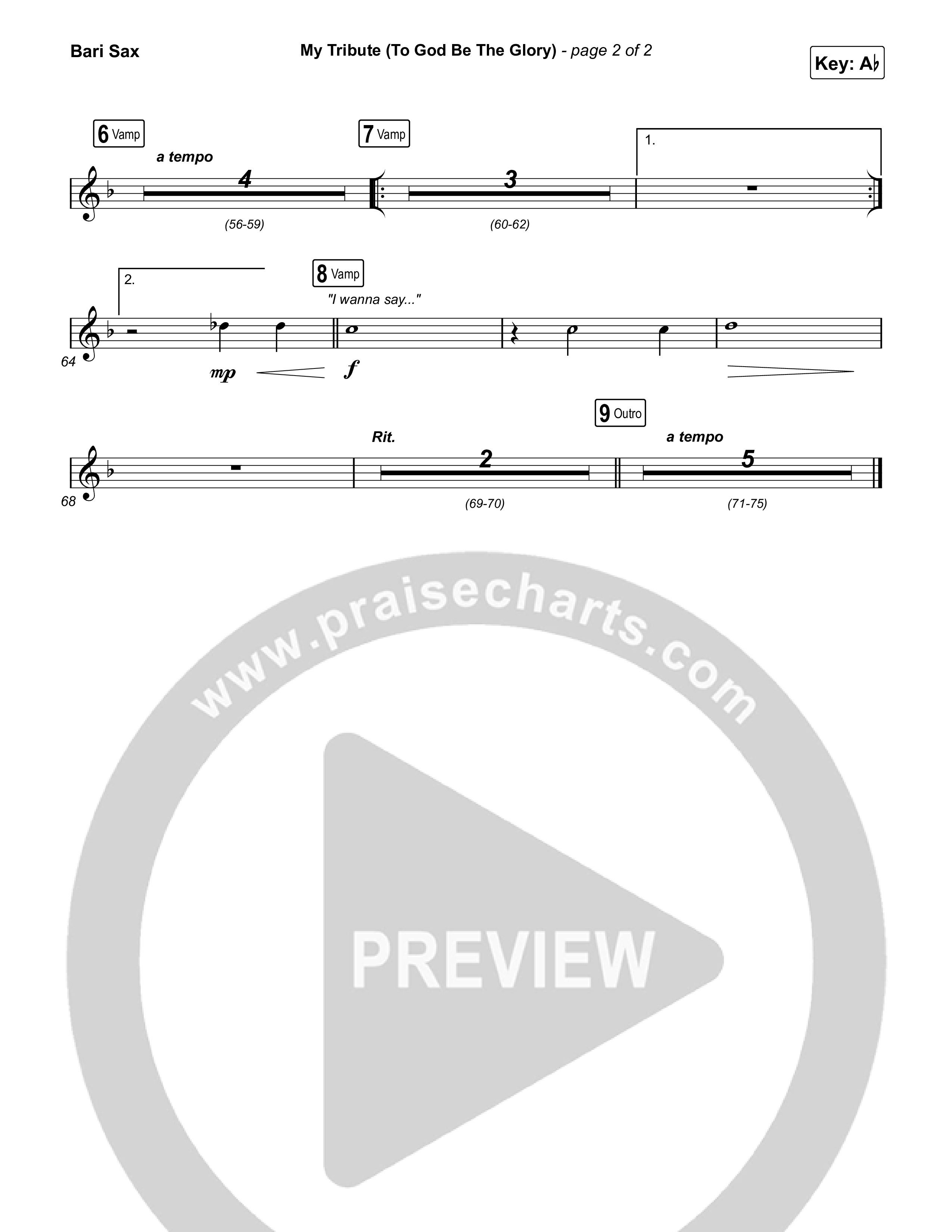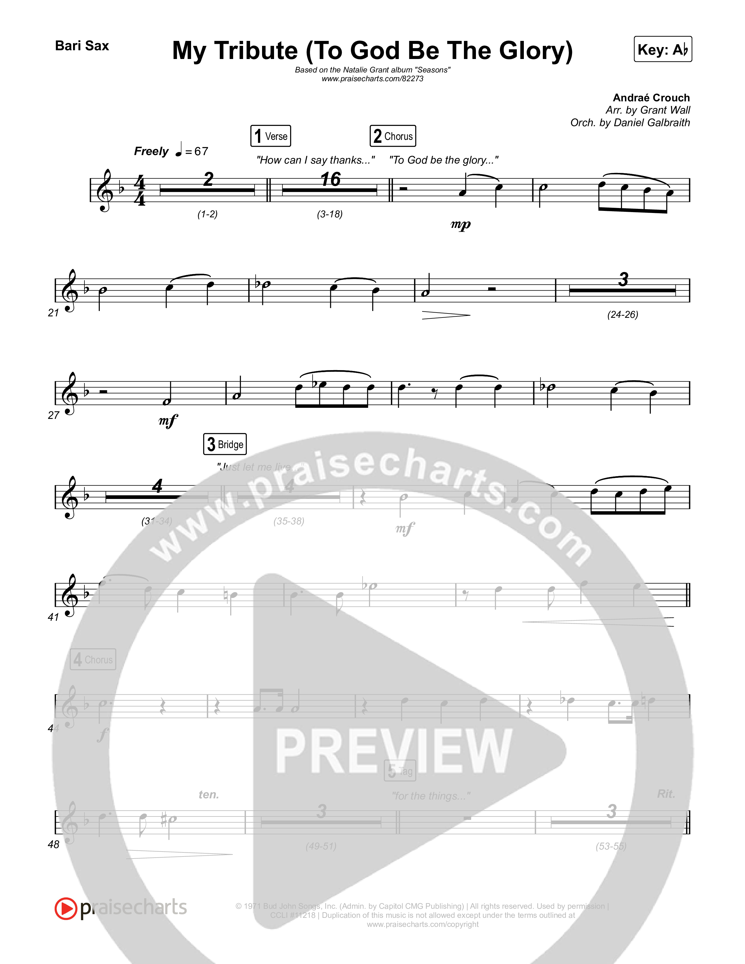 Download the Bari Sax sheet music for My Tribute (To God Be The Glory) by Natalie Grant / CeCe Winans, from the album Seasons. This song was arranged by Grant Wall / Daniel Galbraith in the key of A, Ab, G.
