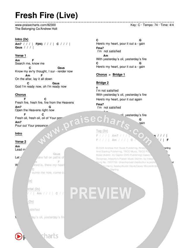 Fresh Fire (Live) Chords PDF (The Belonging Co / Andrew Holt)