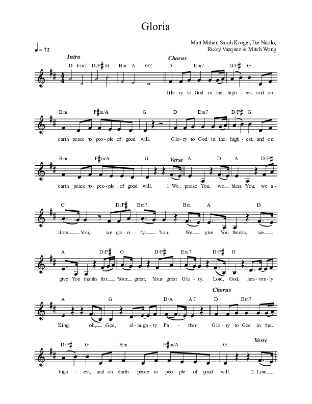 Gloria Lead Sheet Melody (Village Lights / Sarah Kroger)
