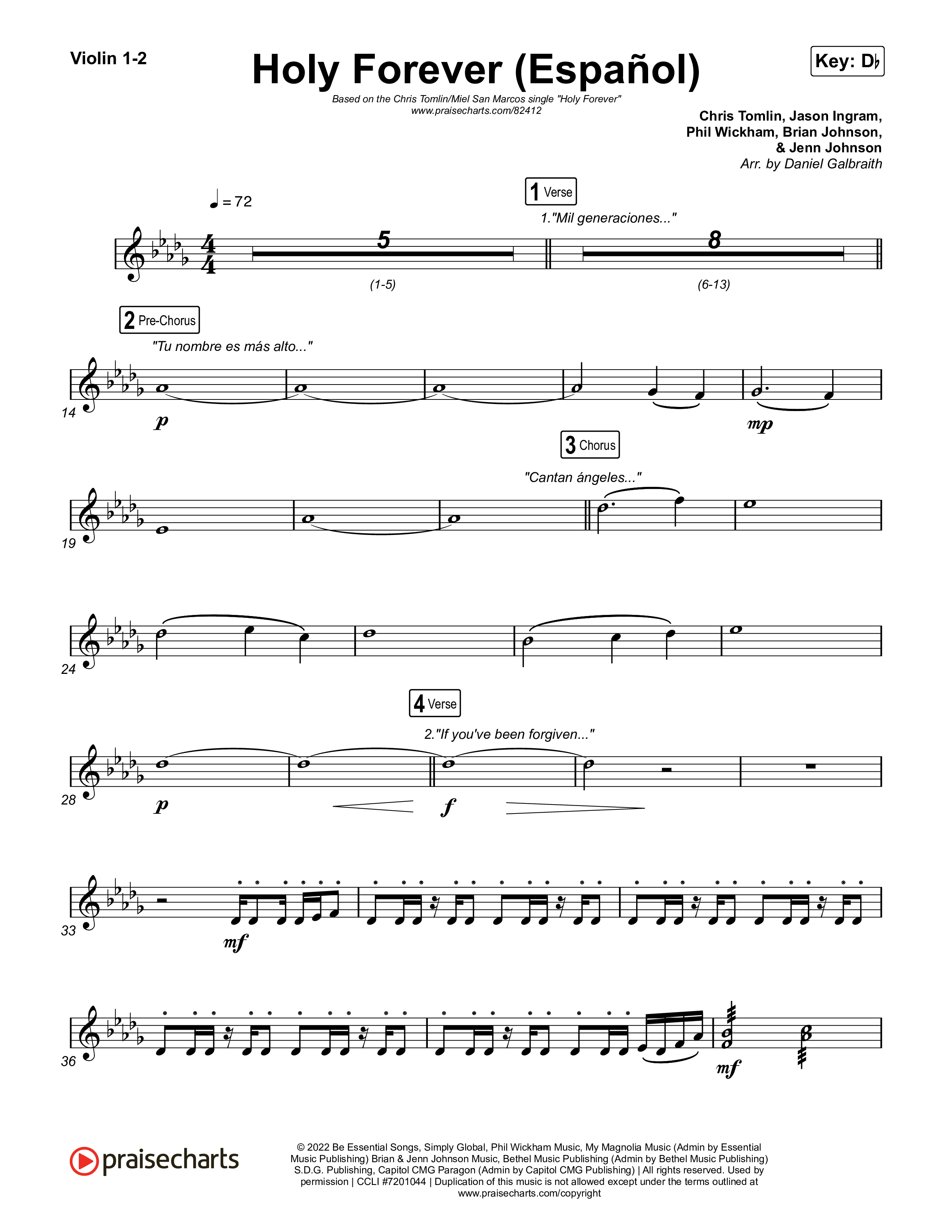 Download the Orchestration string parts for Holy Forever (Español) by Chris Tomlin / Miel San Marcos, from the album Holy Forever (Español). This song was arranged by Daniel Galbraith in the key of C, Db.