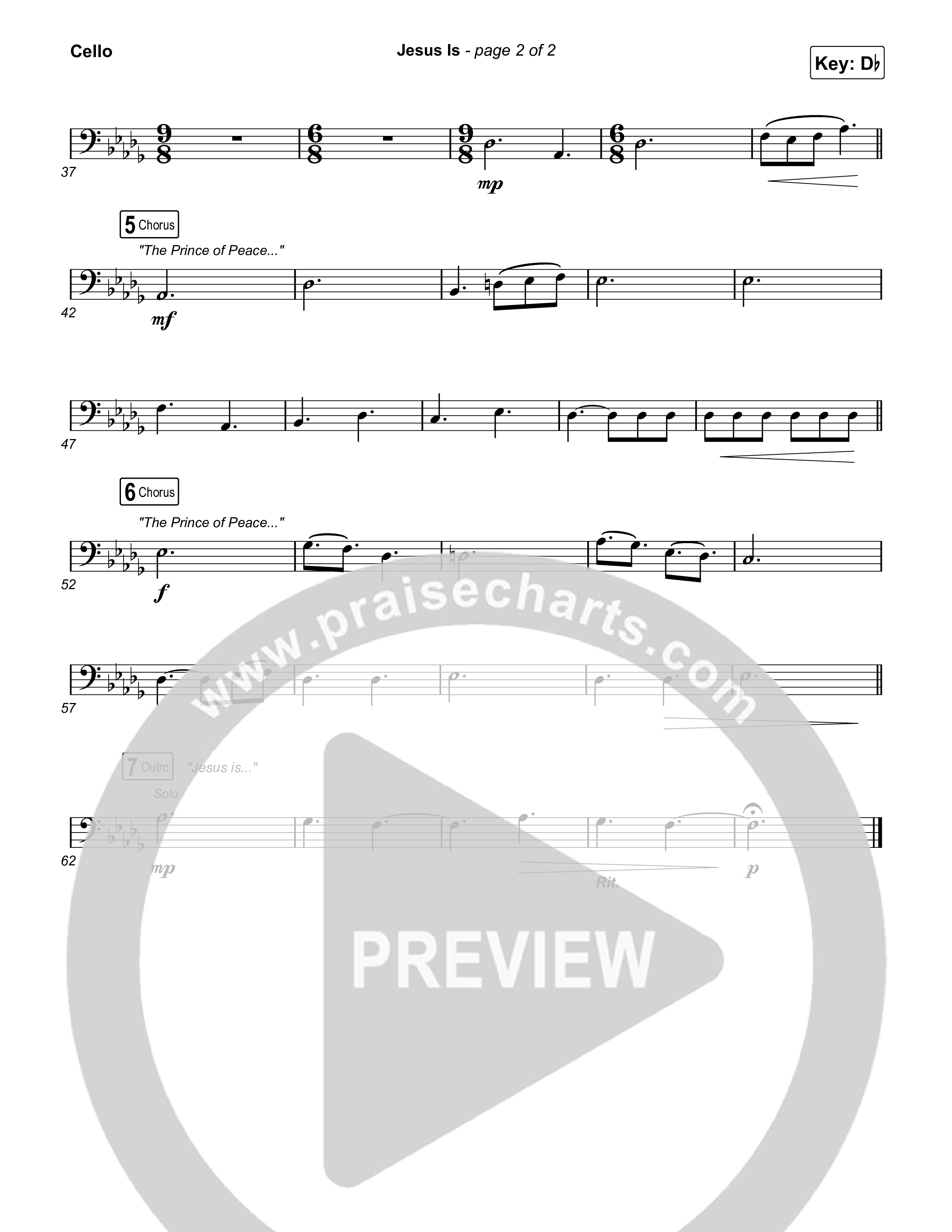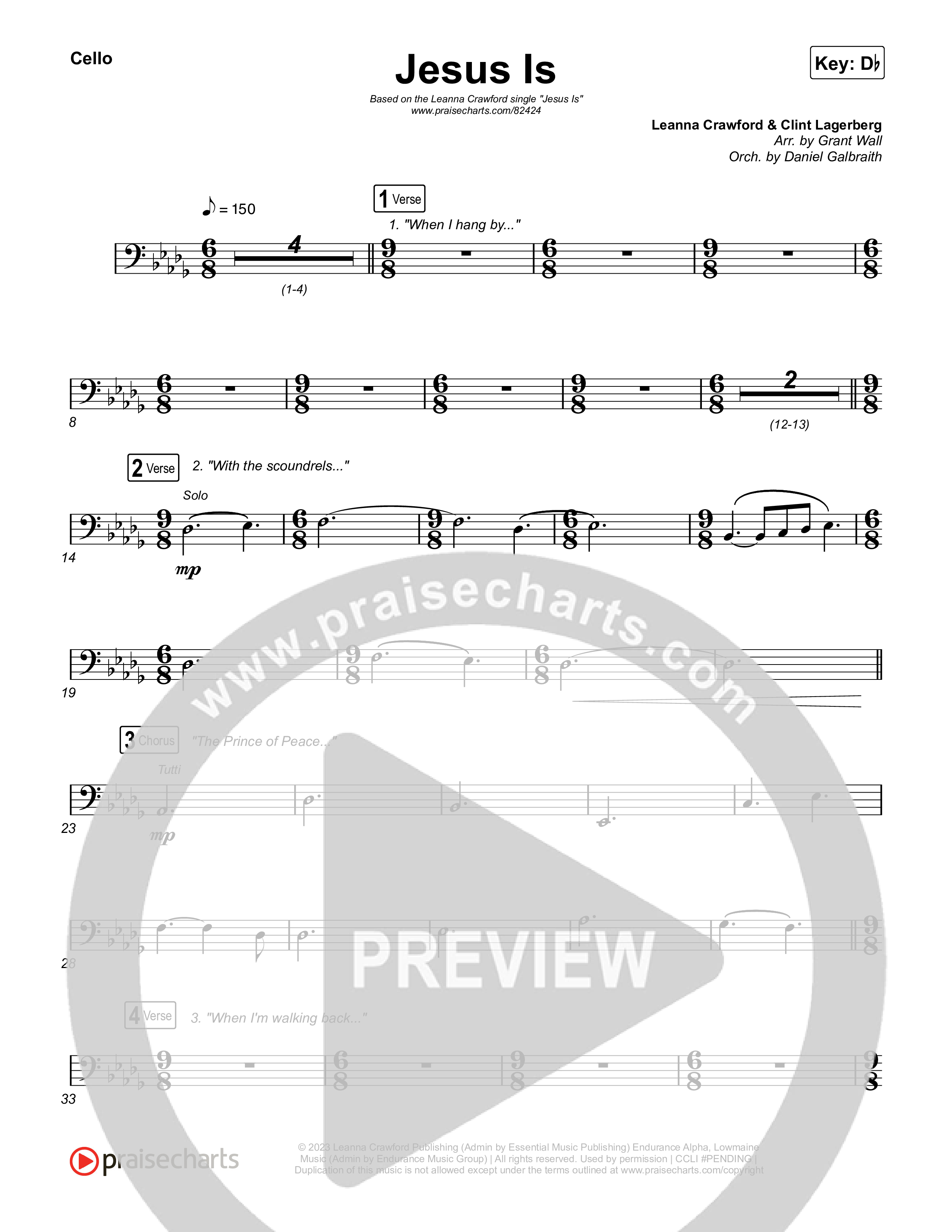 Download the Cello sheet music for Jesus Is by Leanna Crawford, from the album Jesus Is. This song was arranged by Grant Wall / Daniel Galbraith in the key of C, D, Db.