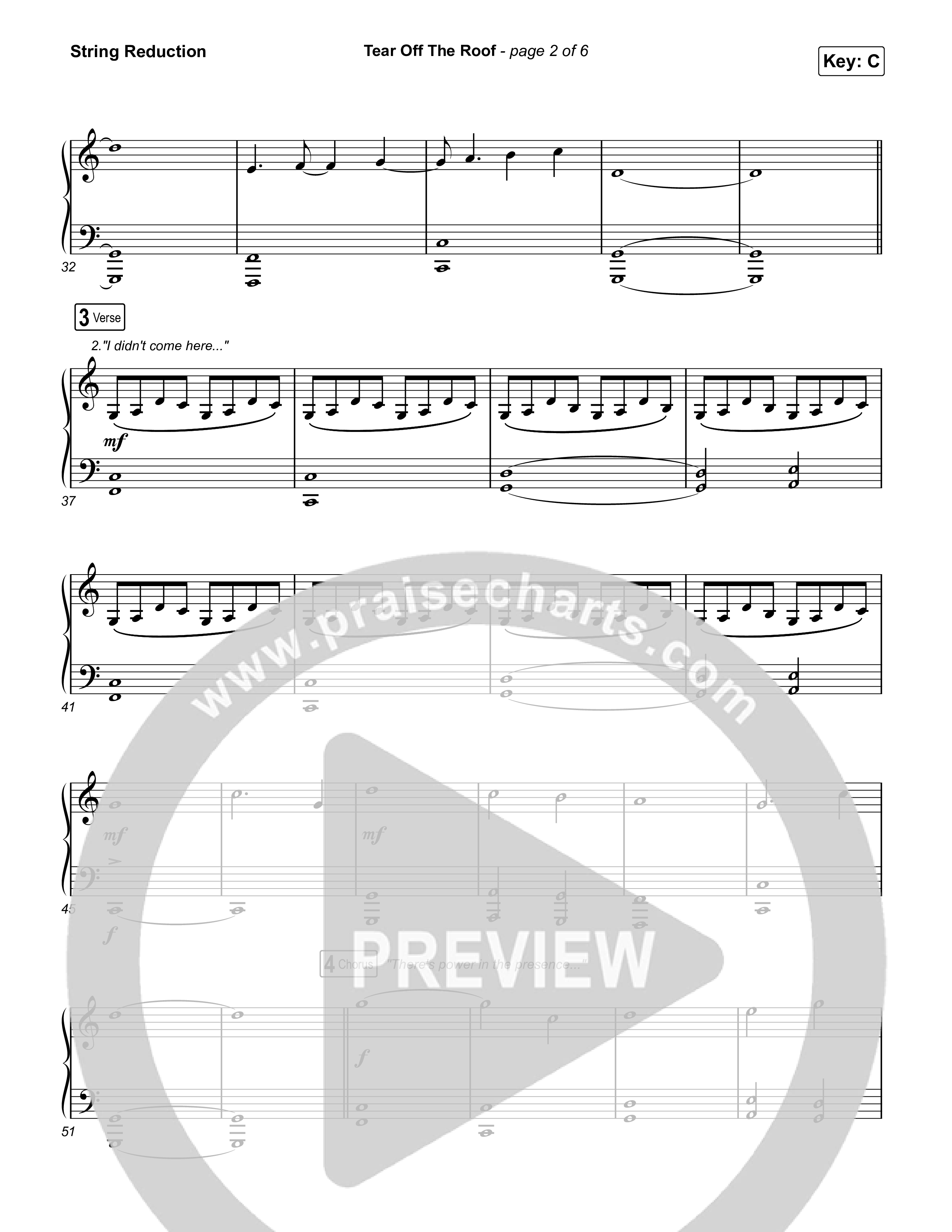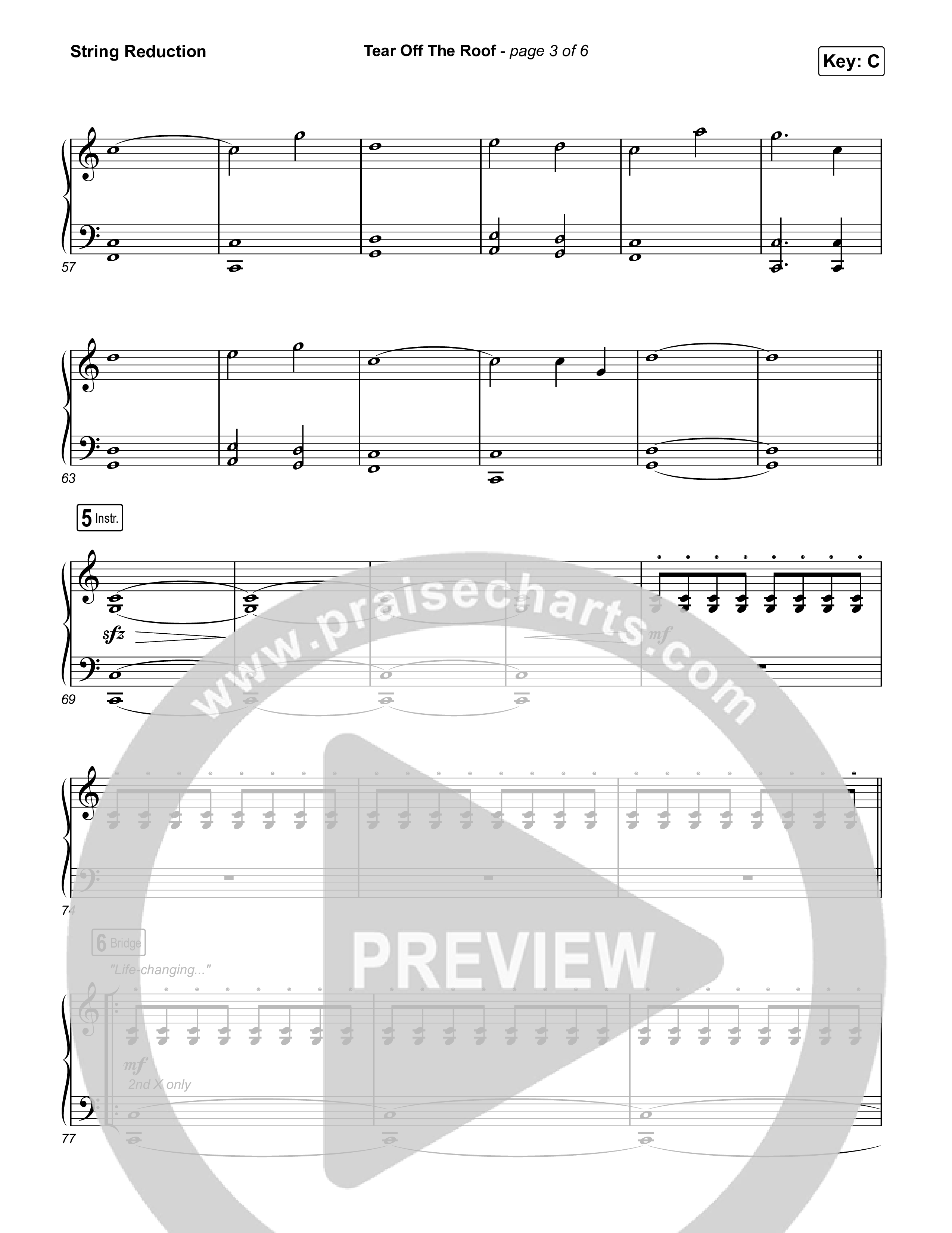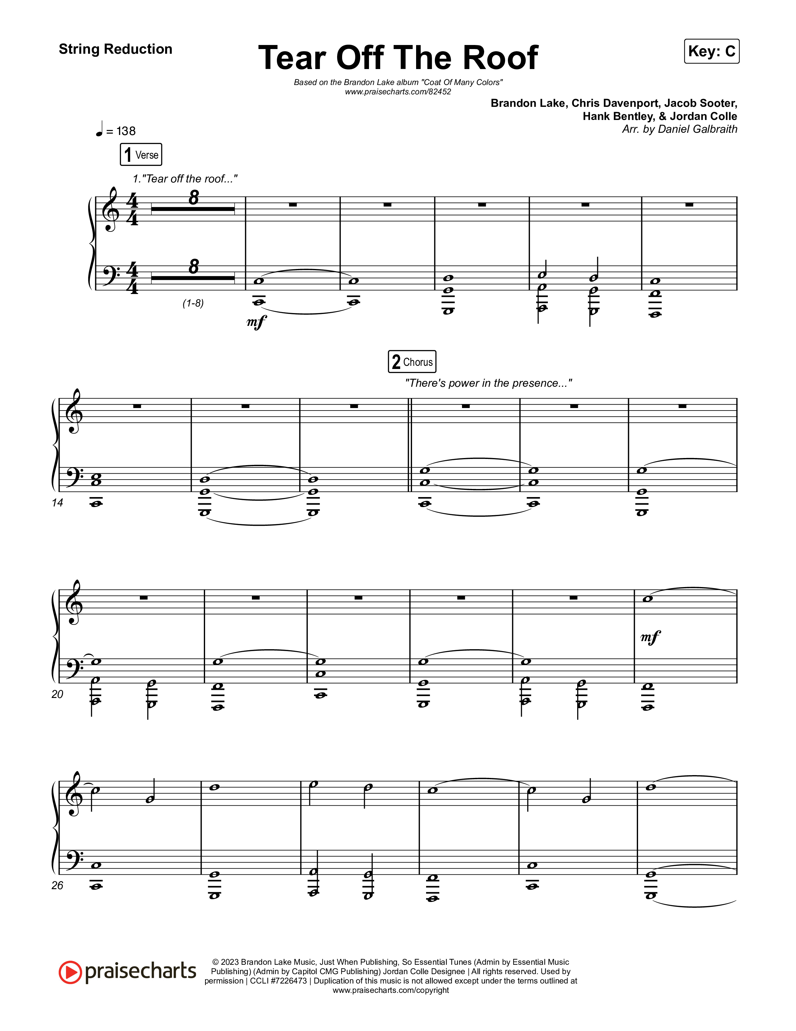 Download the String Reduction sheet music for Tear Off The Roof by Brandon Lake, from the album Coat Of Many Colors. This song was arranged by Daniel Galbraith in the key of C, Db.