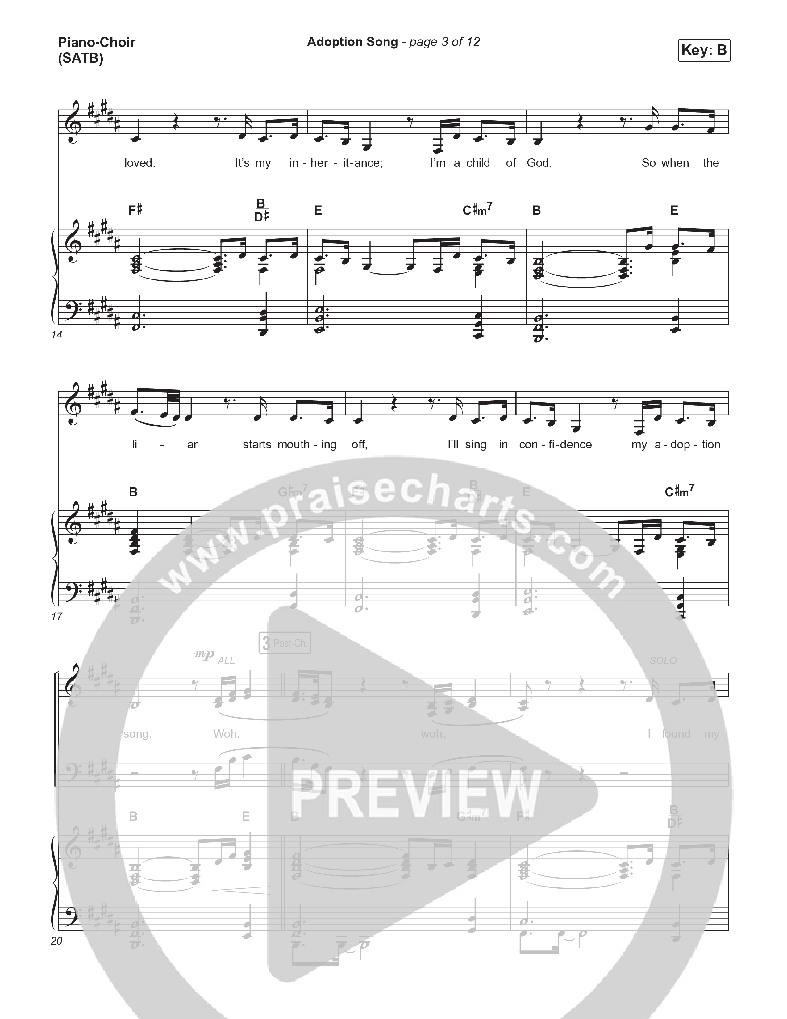 Download the PDF sheet music for Adoption Song by Brandon Lake, from the album Coat Of Many Colors. This song was arranged by Grant Wall in the key of B, Bb.
