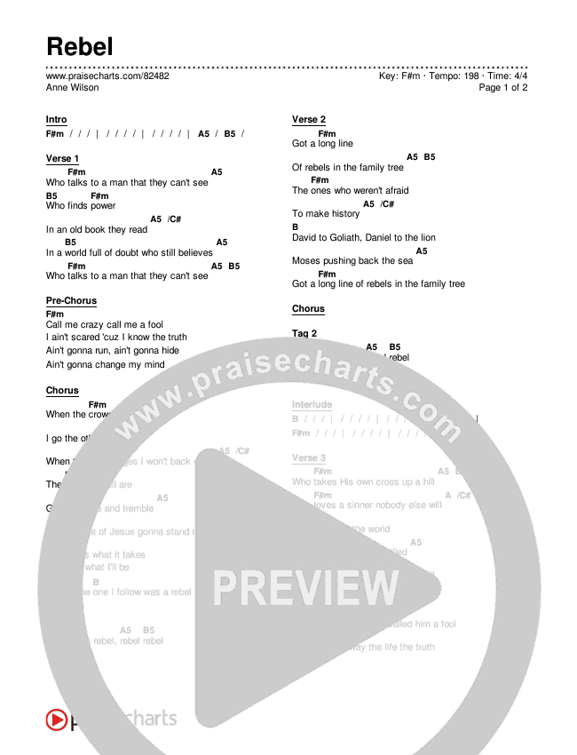 Download the PDF Chord Charts for Rebel by Anne Wilson, from the album REBEL (The Beginning).