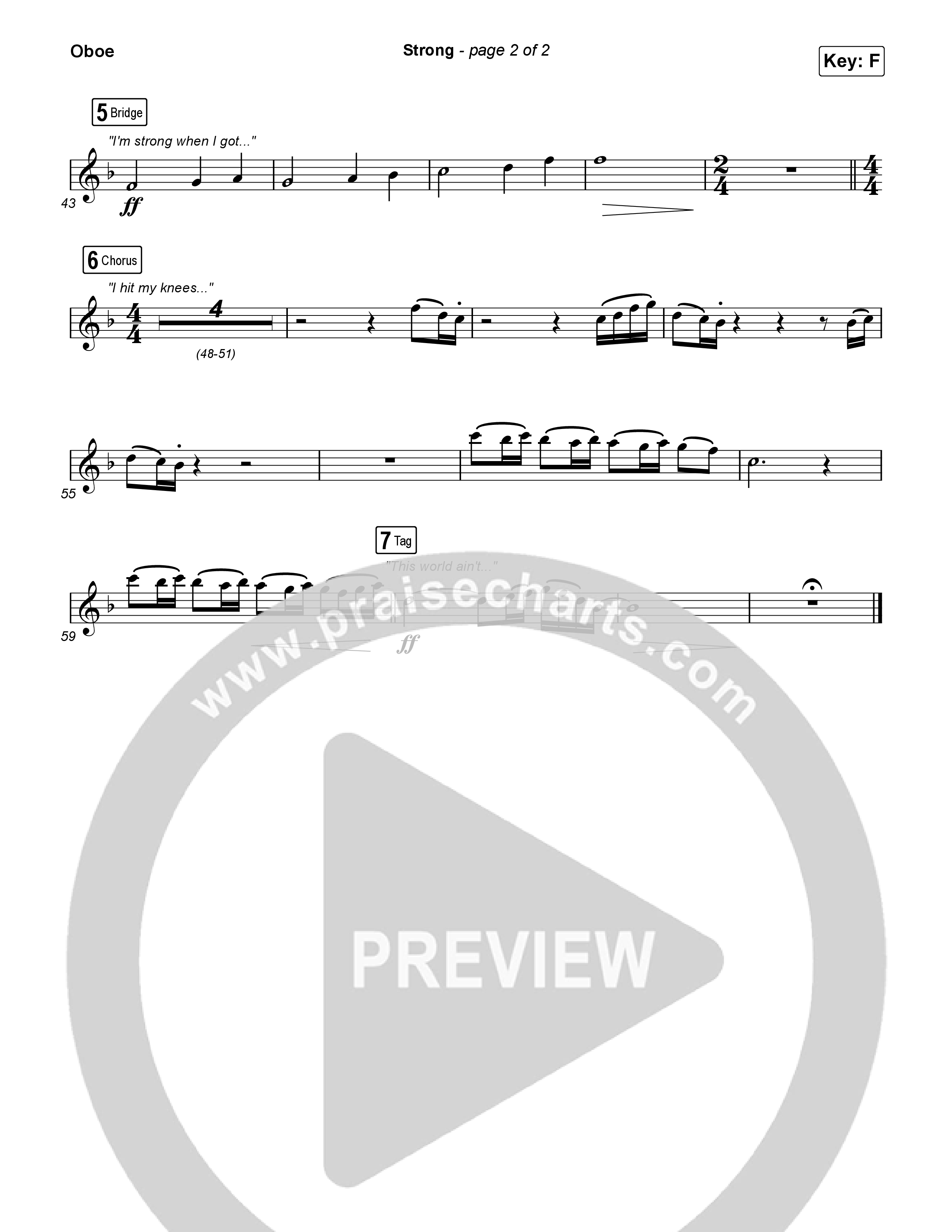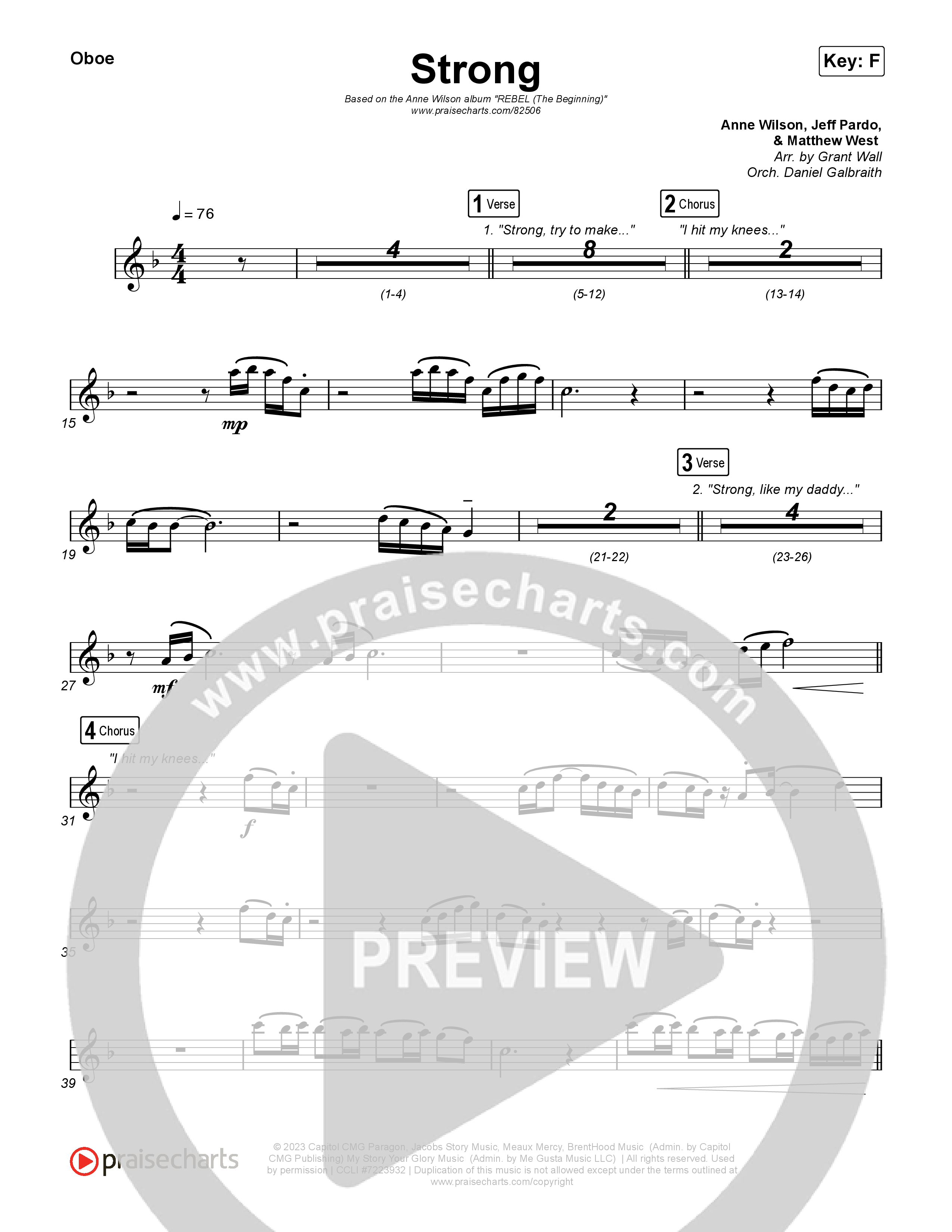 Download the Oboe sheet music for Strong by Anne Wilson, from the album REBEL (The Beginning). This song was arranged by Grant Wall / Daniel Galbraith in the key of F, G.