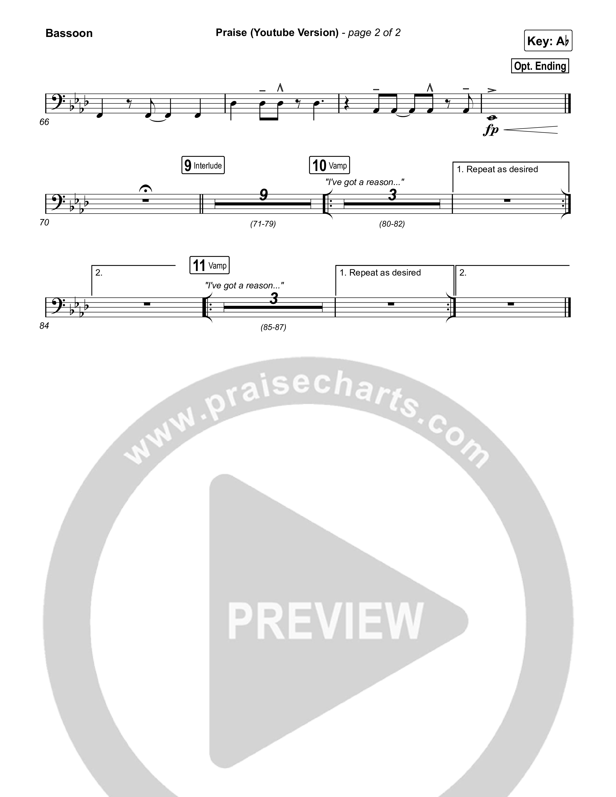 Download the Bassoon sheet music for Praise by Elevation Worship / Elevation Choir, from the album Praise. This song was arranged by Grant Wall / Daniel Galbraith in the key of Ab, G.