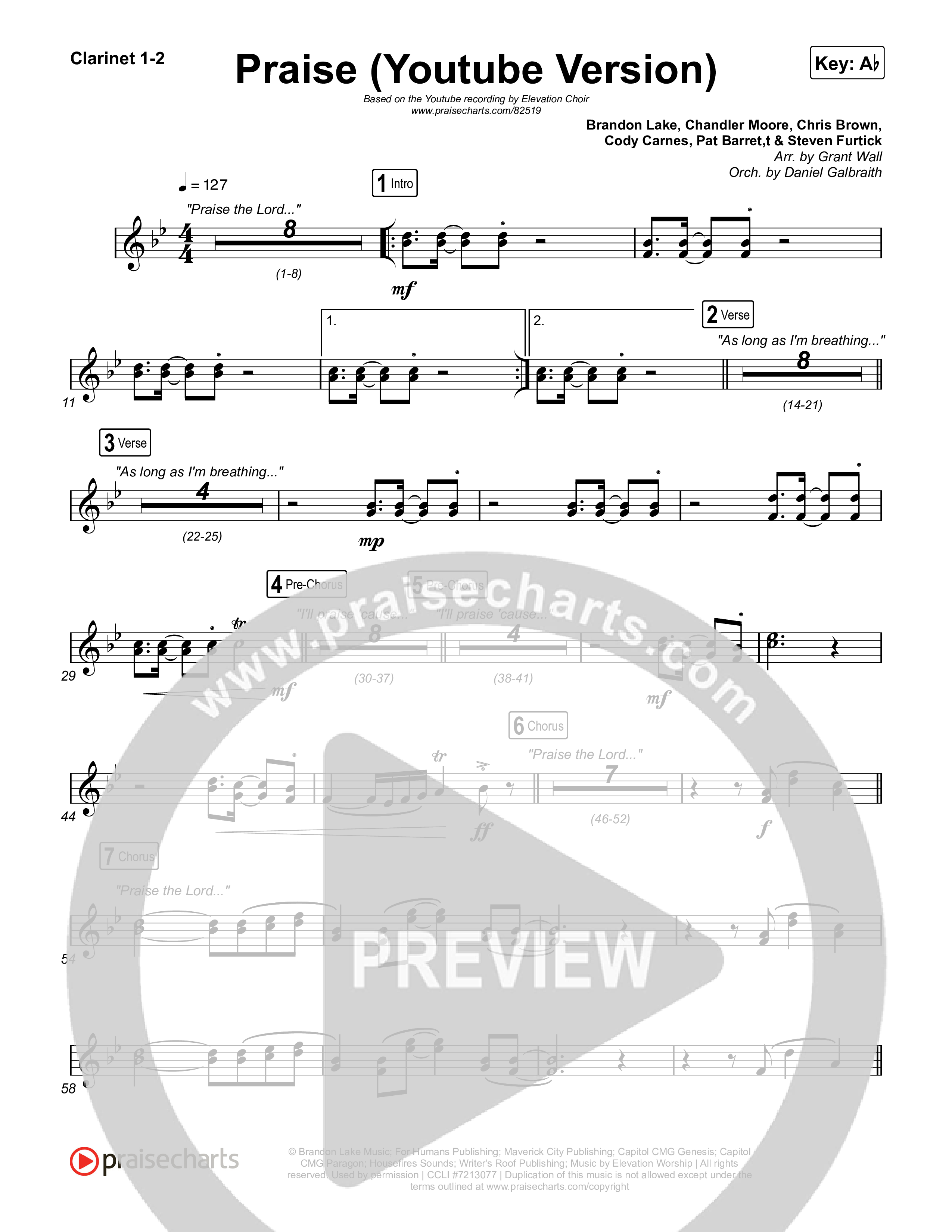 Download the Clarinet sheet music for Praise by Elevation Worship / Elevation Choir, from the album Praise. This song was arranged by Grant Wall / Daniel Galbraith in the key of Ab, G.