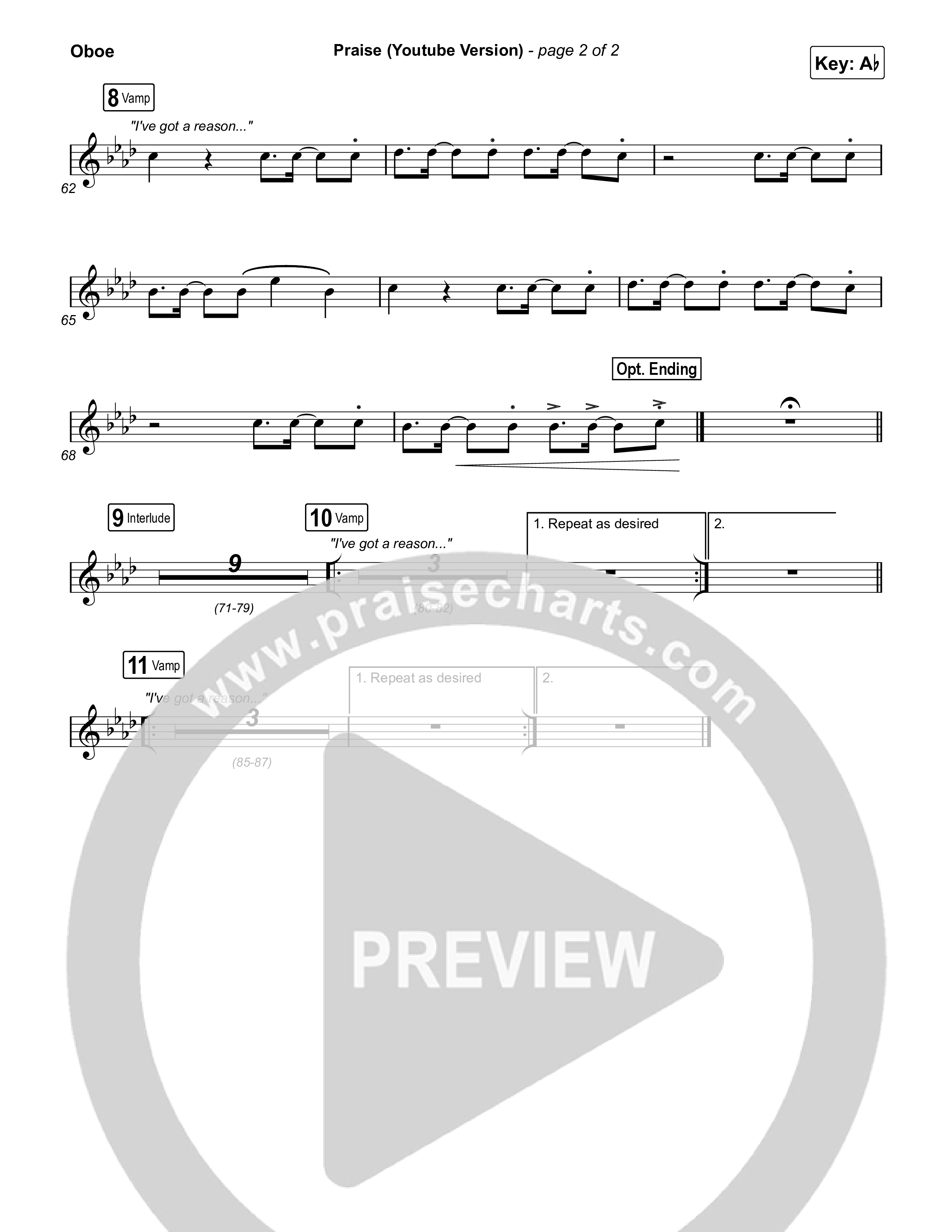Download the Oboe sheet music for Praise by Elevation Worship / Elevation Choir, from the album Praise. This song was arranged by Grant Wall / Daniel Galbraith in the key of Ab, G.