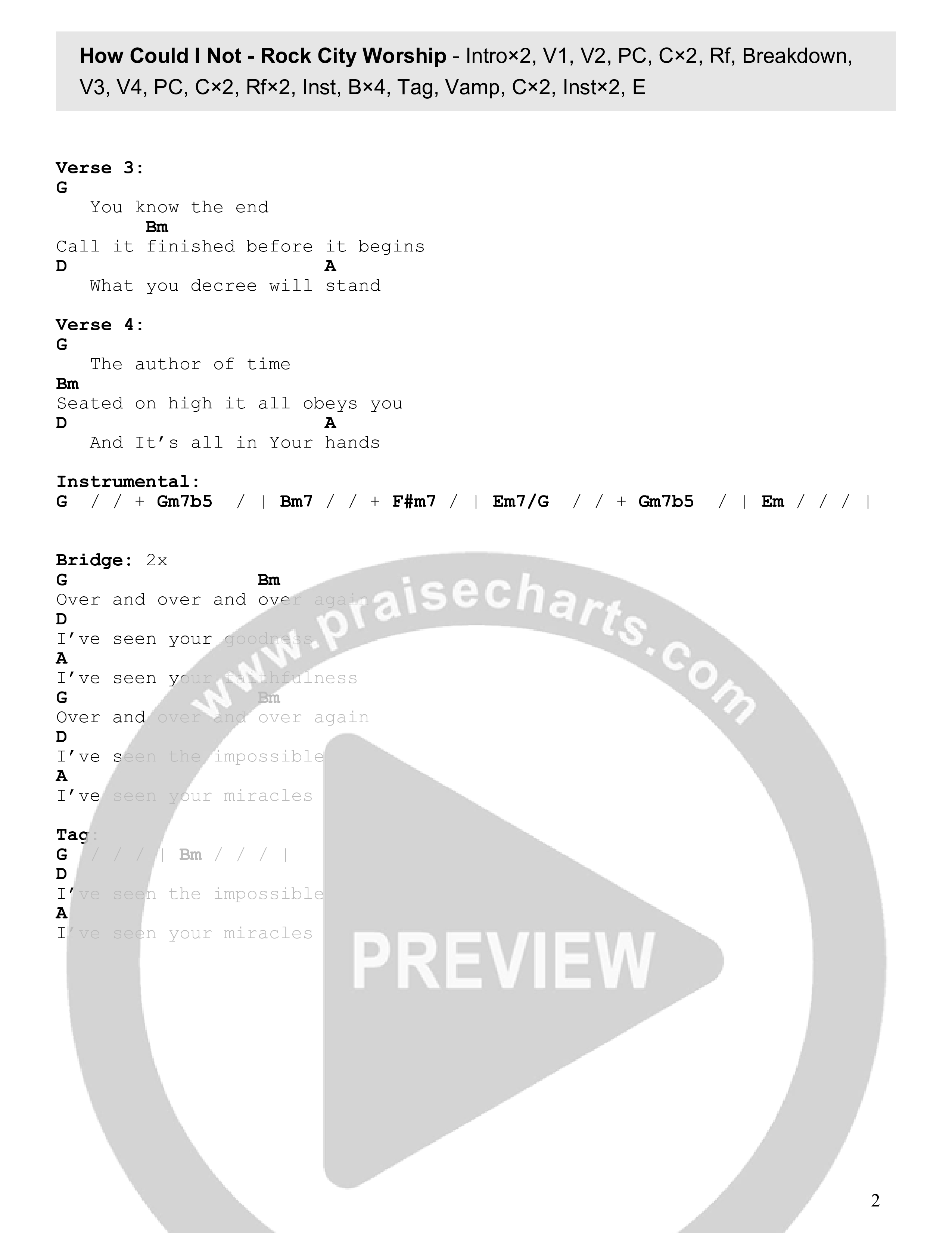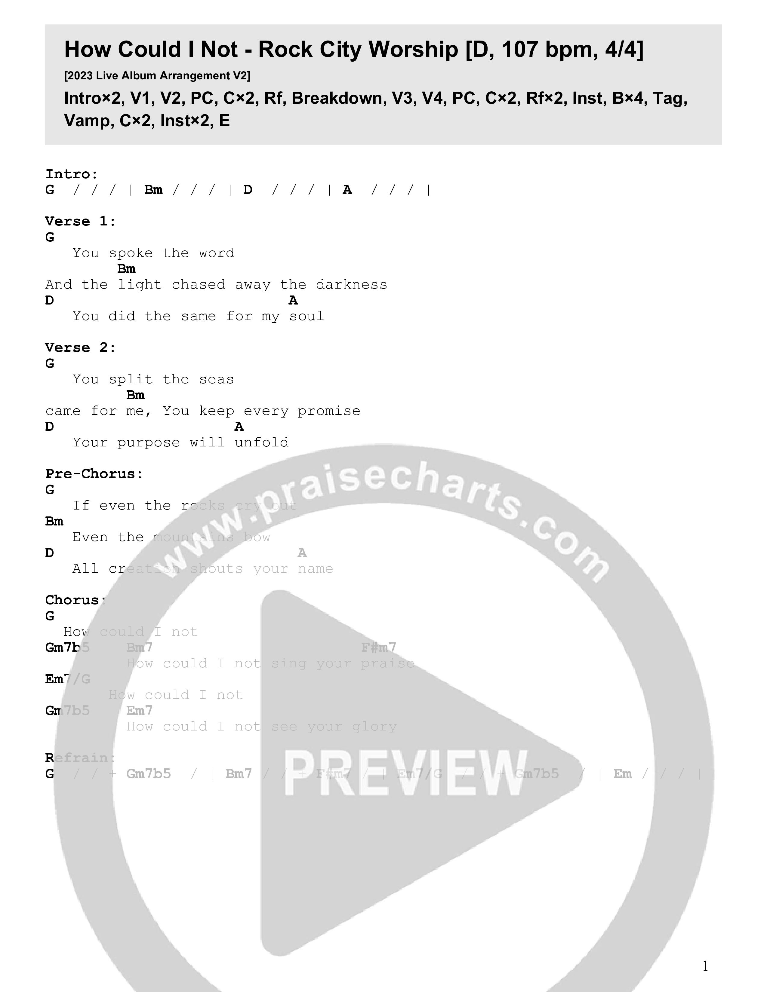 Download the PDF Chord Charts for How Could I Not (Live) by Rock City Worship, from the album Testify.