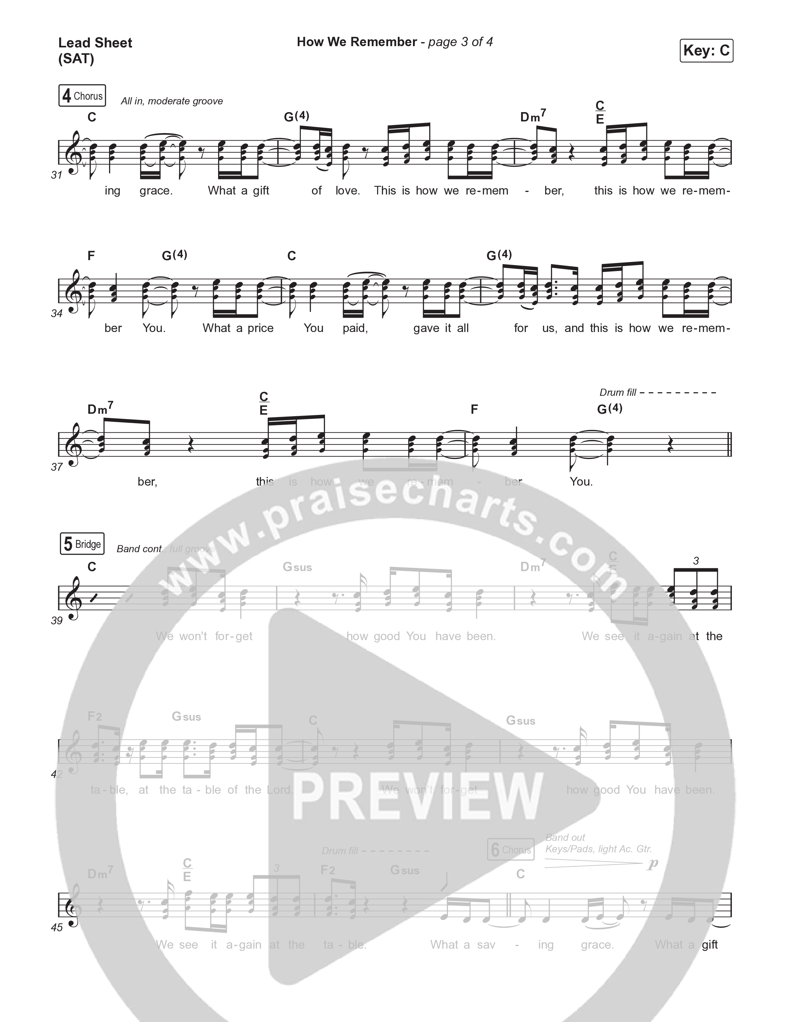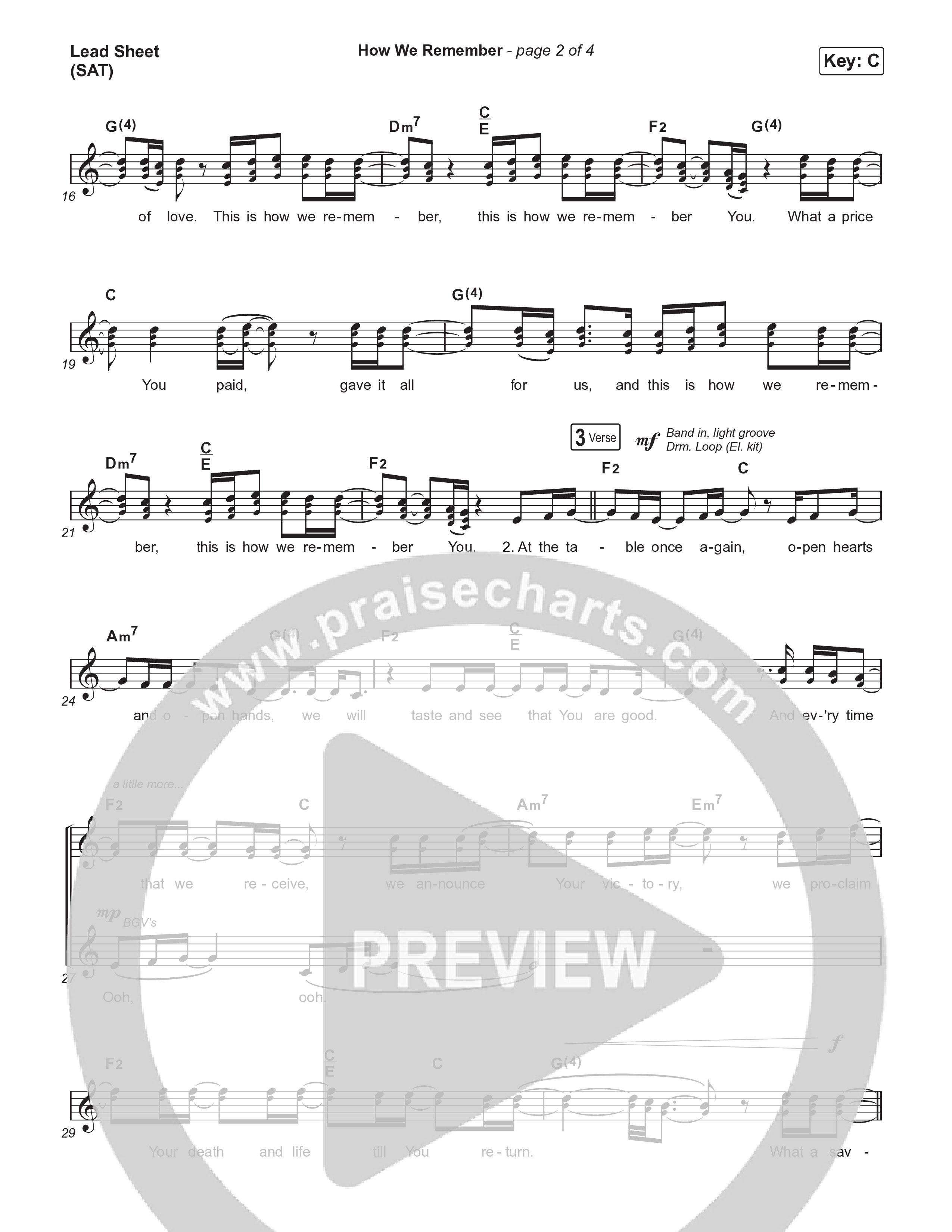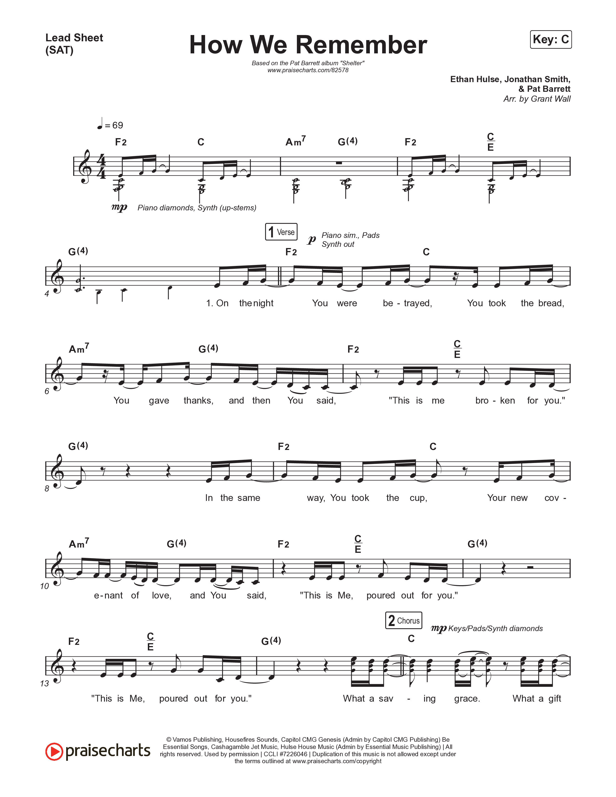 Download the sheet music for How We Remember by Pat Barrett, from the album Shelter. This song was arranged by Grant Wall in the key of C, D.