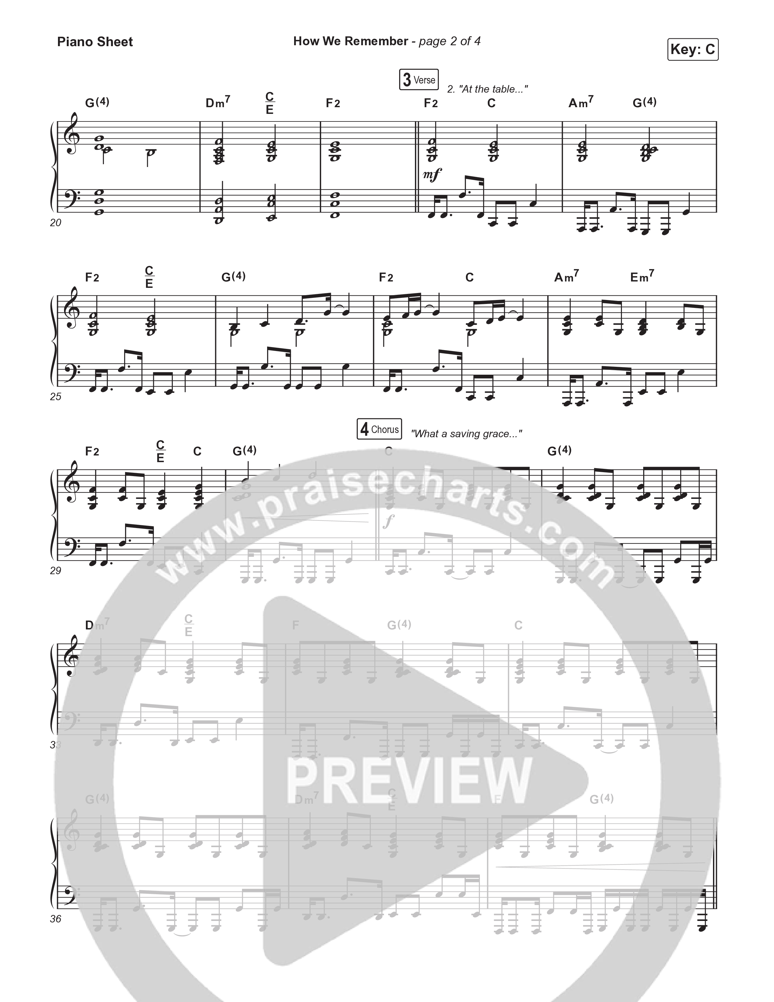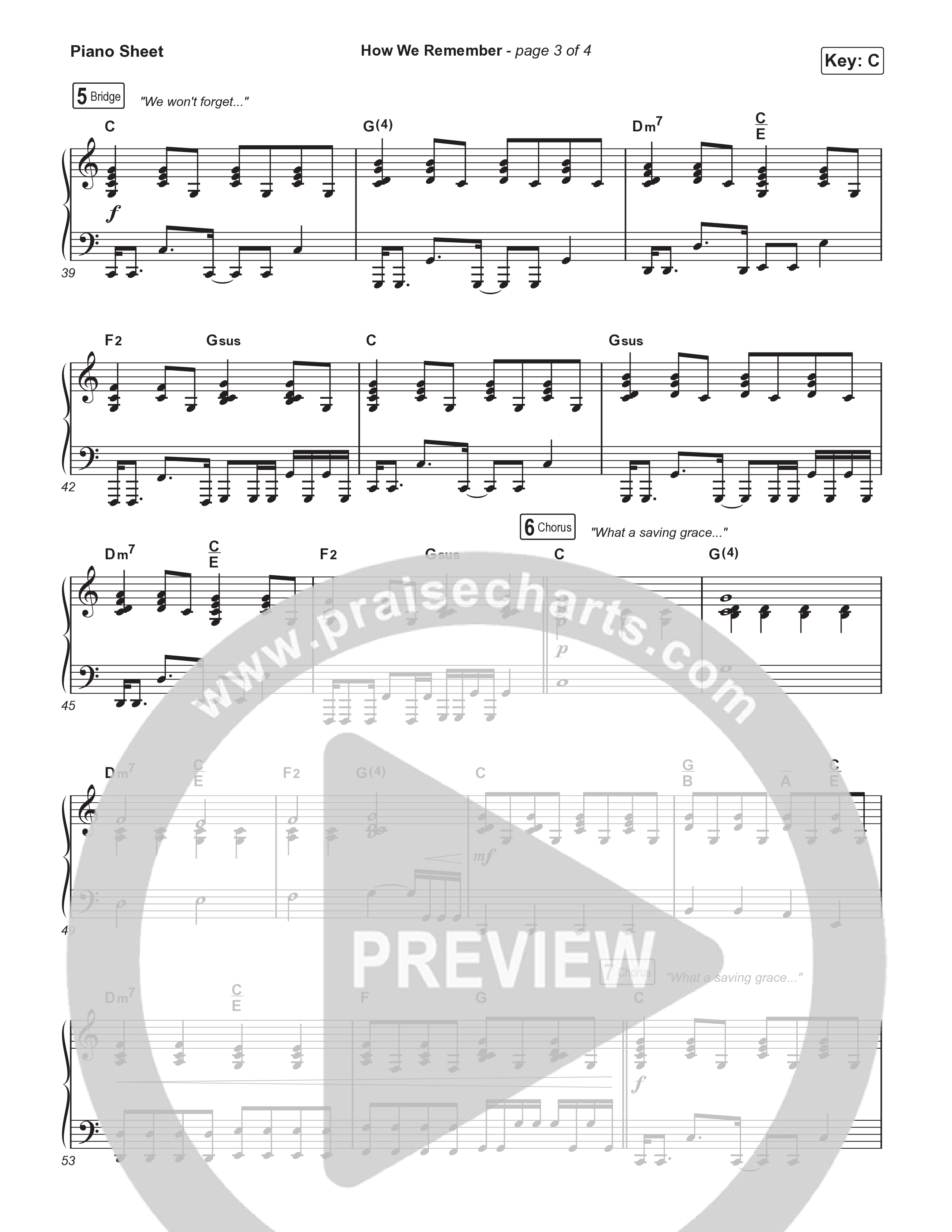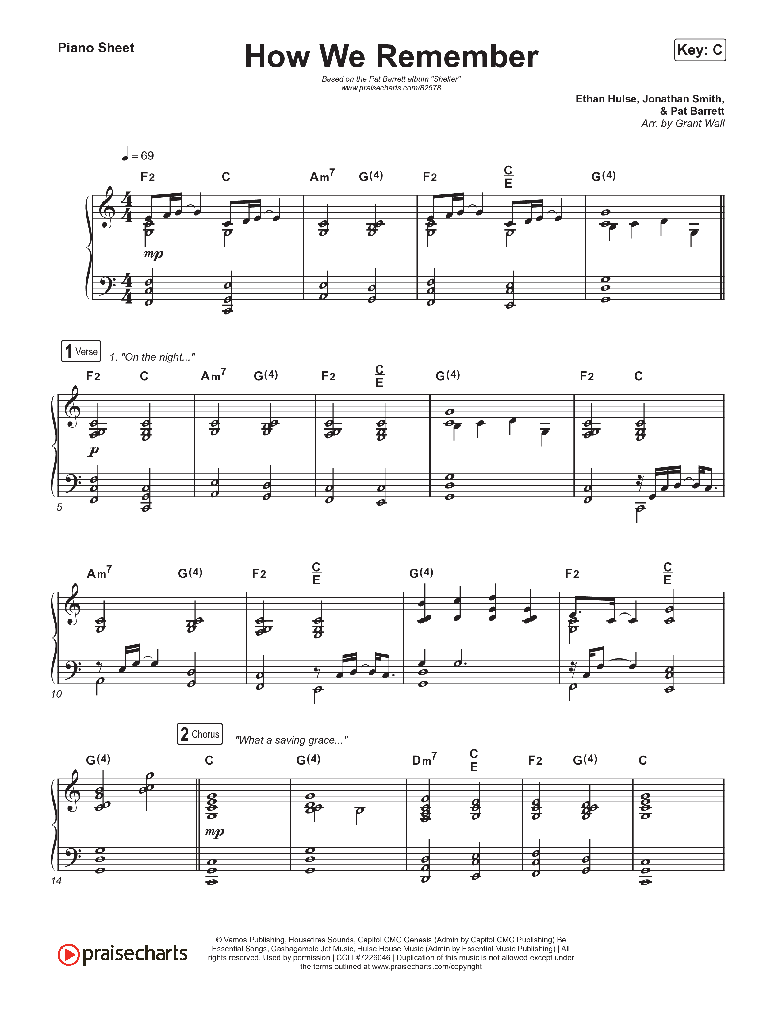 Download the piano sheet for How We Remember by Pat Barrett, from the album Shelter. This song was arranged by Grant Wall in the key of C, D.