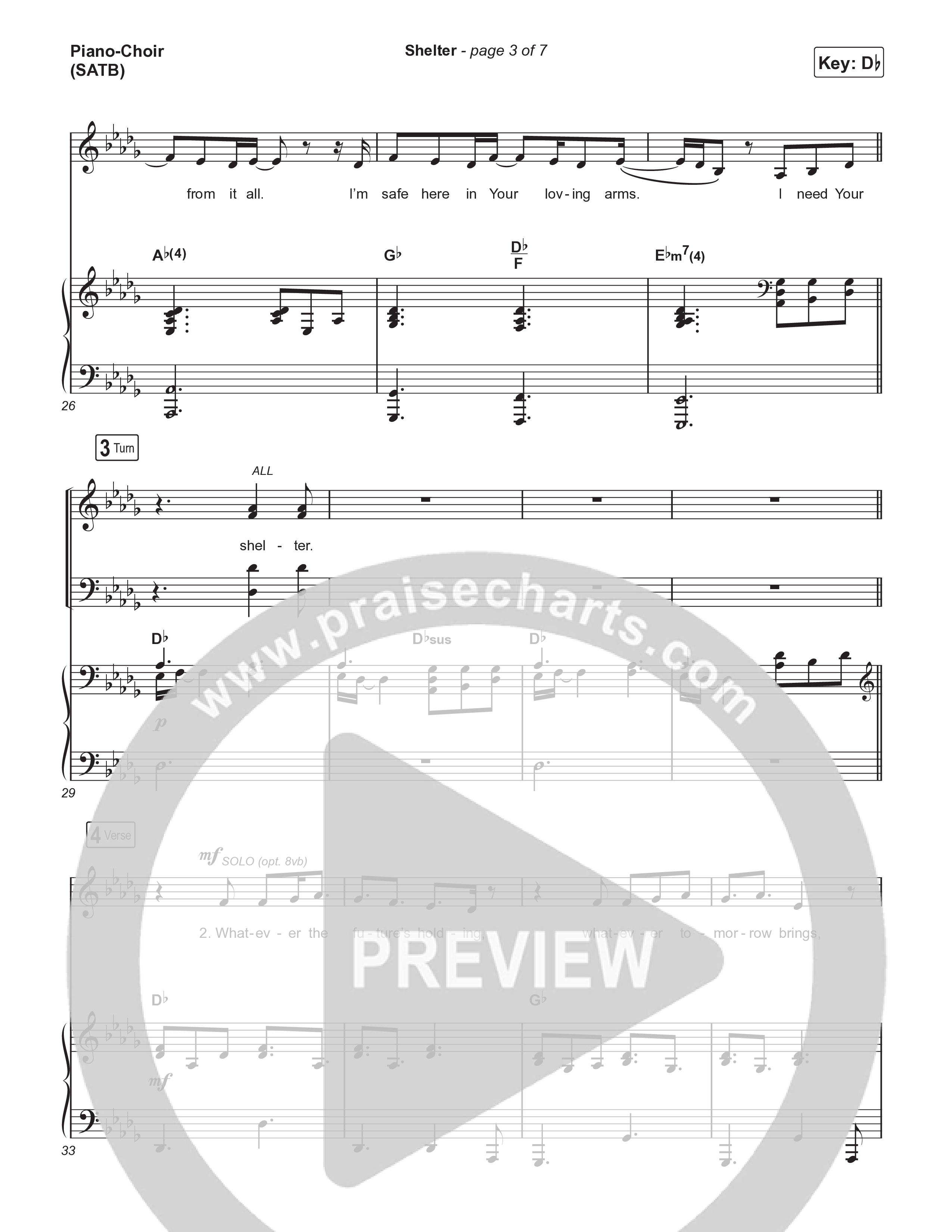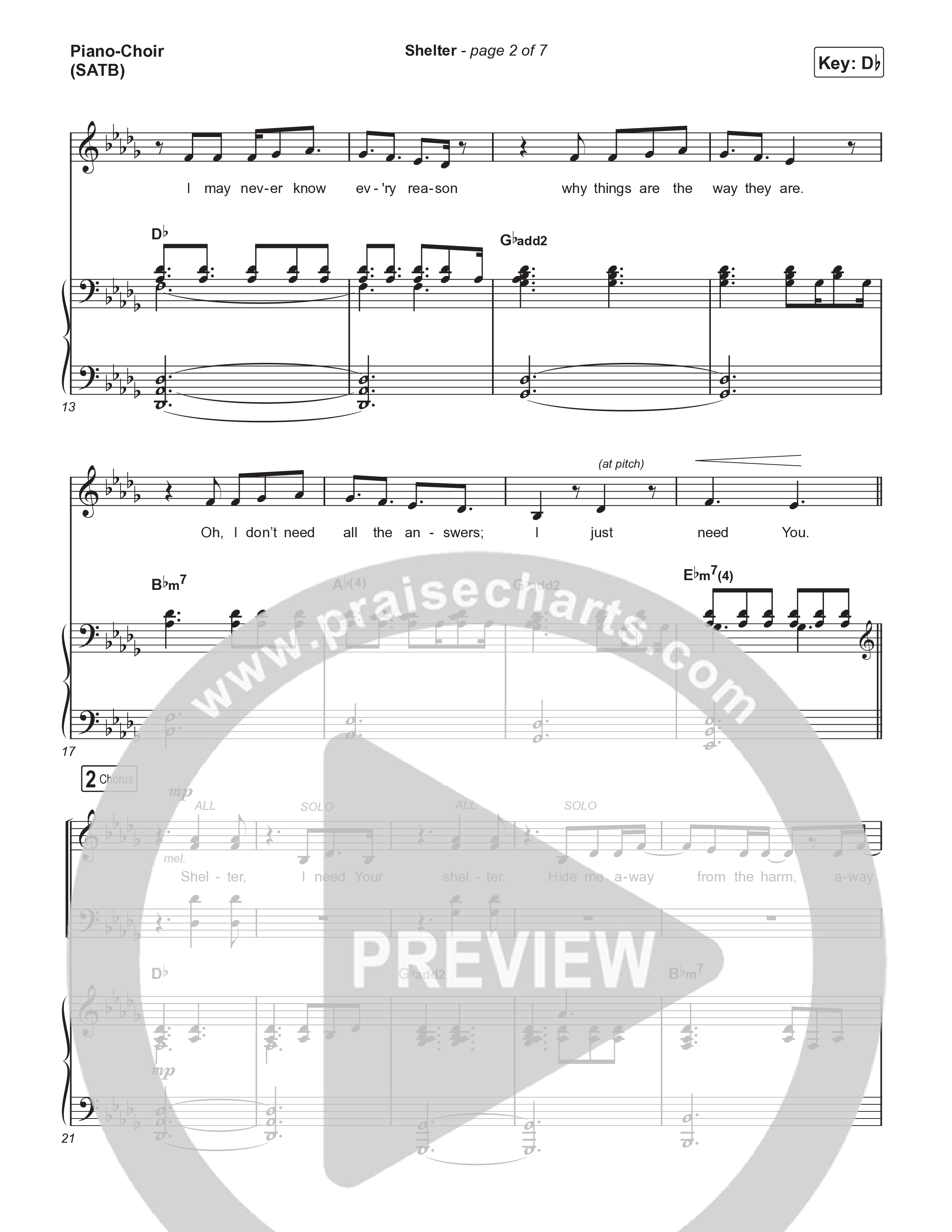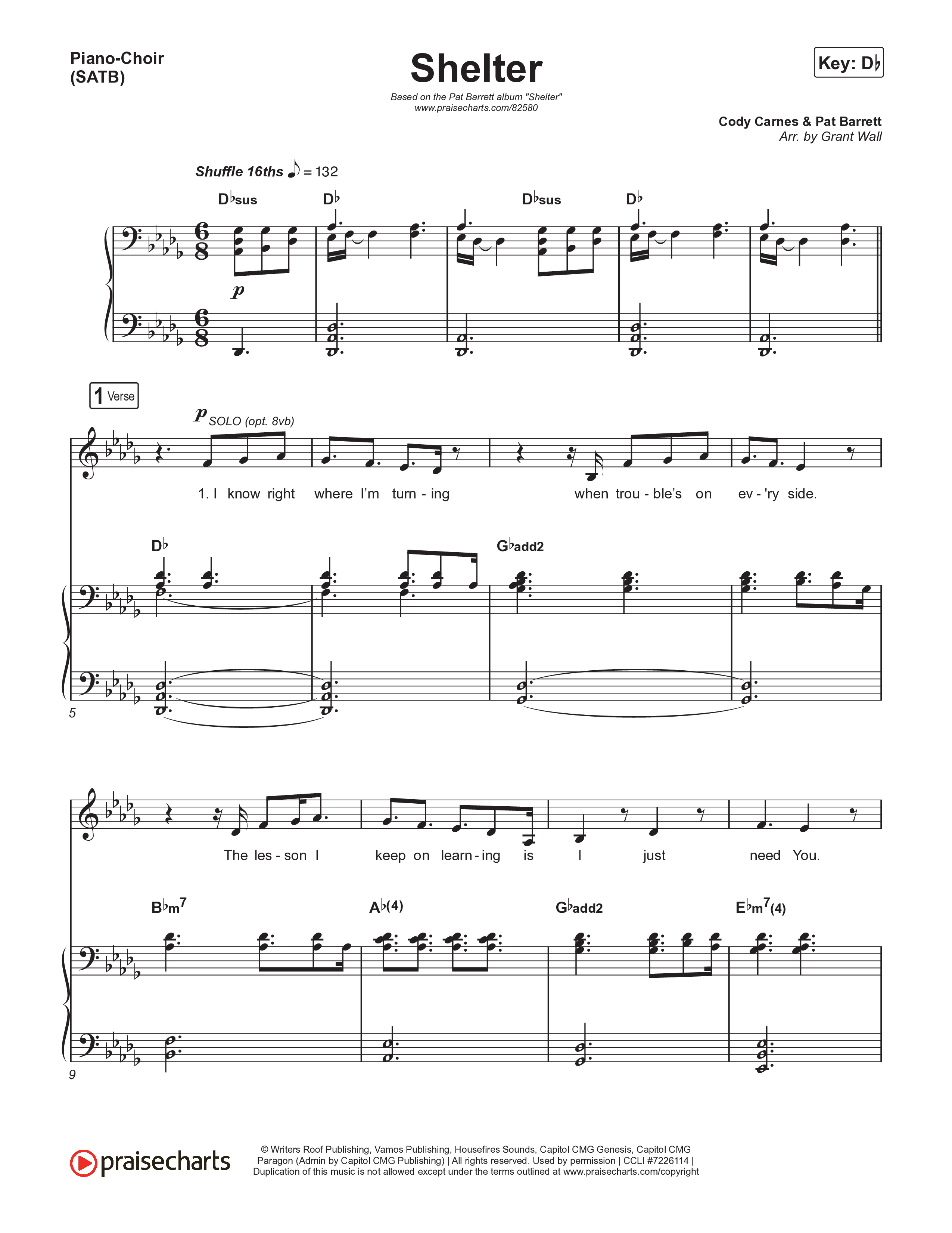 Download the sheet music for Shelter by Pat Barrett, from the album Shelter. This song was arranged by Grant Wall in the key of D, Db.
