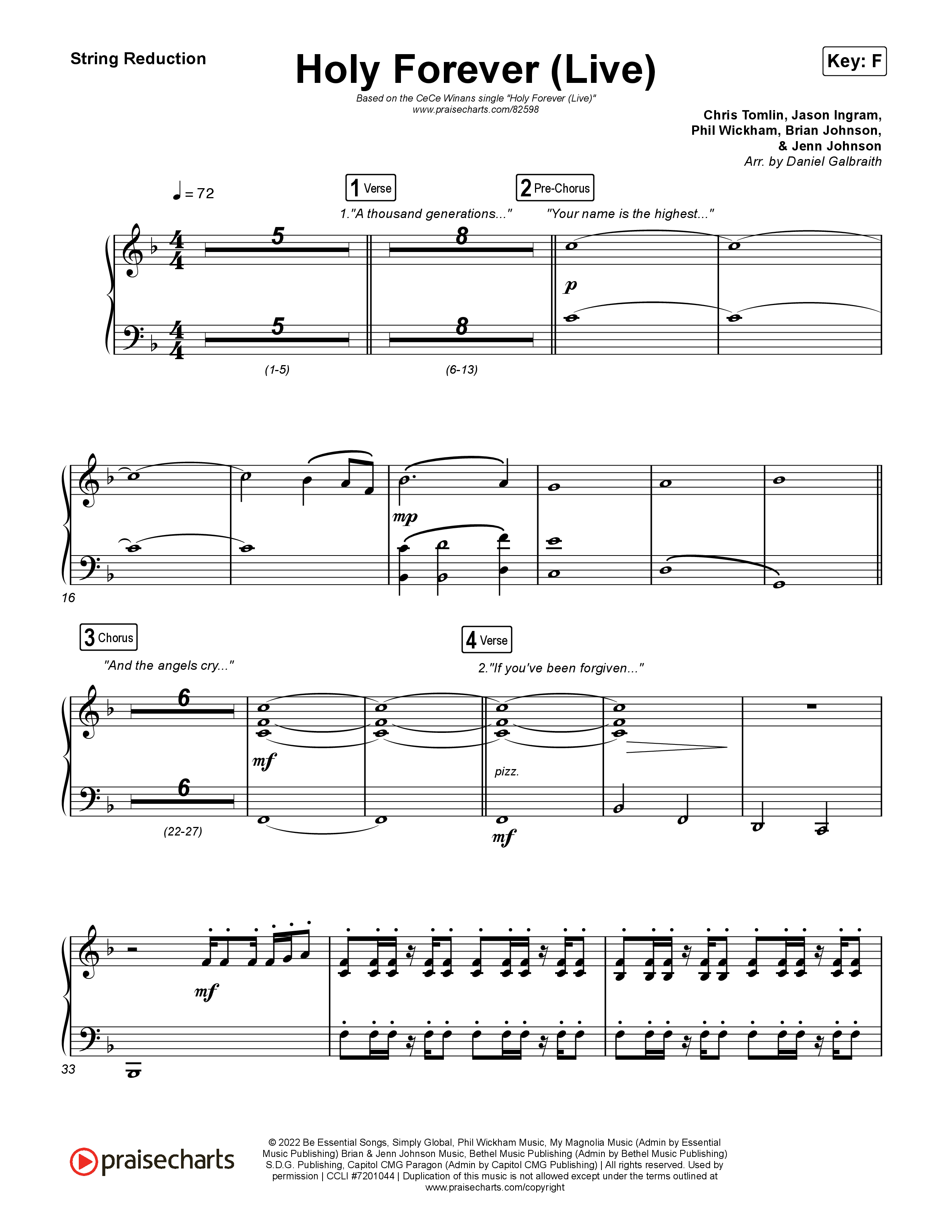 Download the String Reduction sheet music for Holy Forever (Live) by CeCe Winans, from the album More Than This. This song was arranged by Daniel Galbraith in the key of A, F, G.