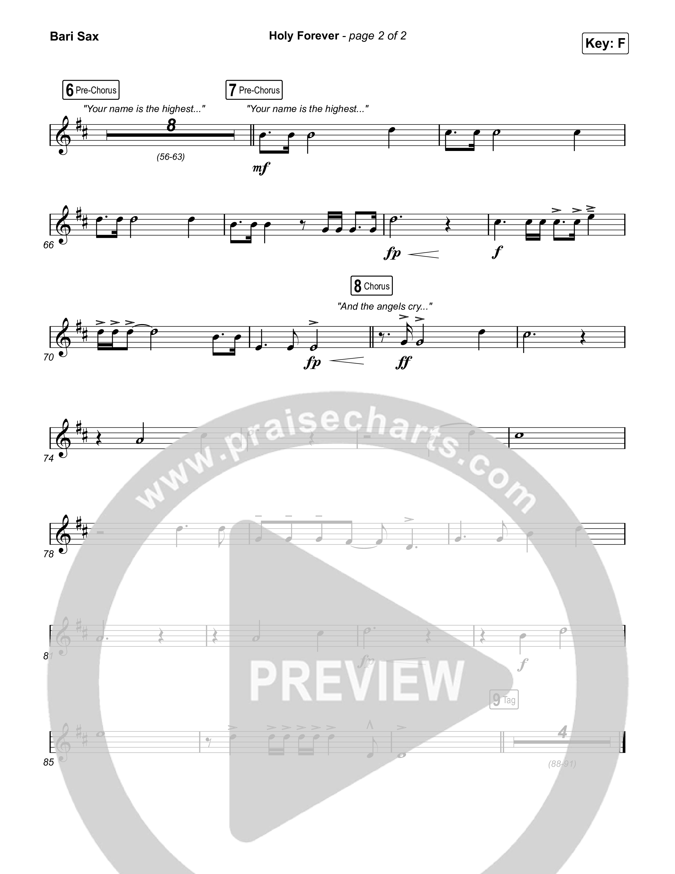 Download the Bari Sax sheet music for Holy Forever (Single Version) by CeCe Winans, from the album More Than This. This song was arranged by Daniel Galbraith in the key of F, G, Gb.