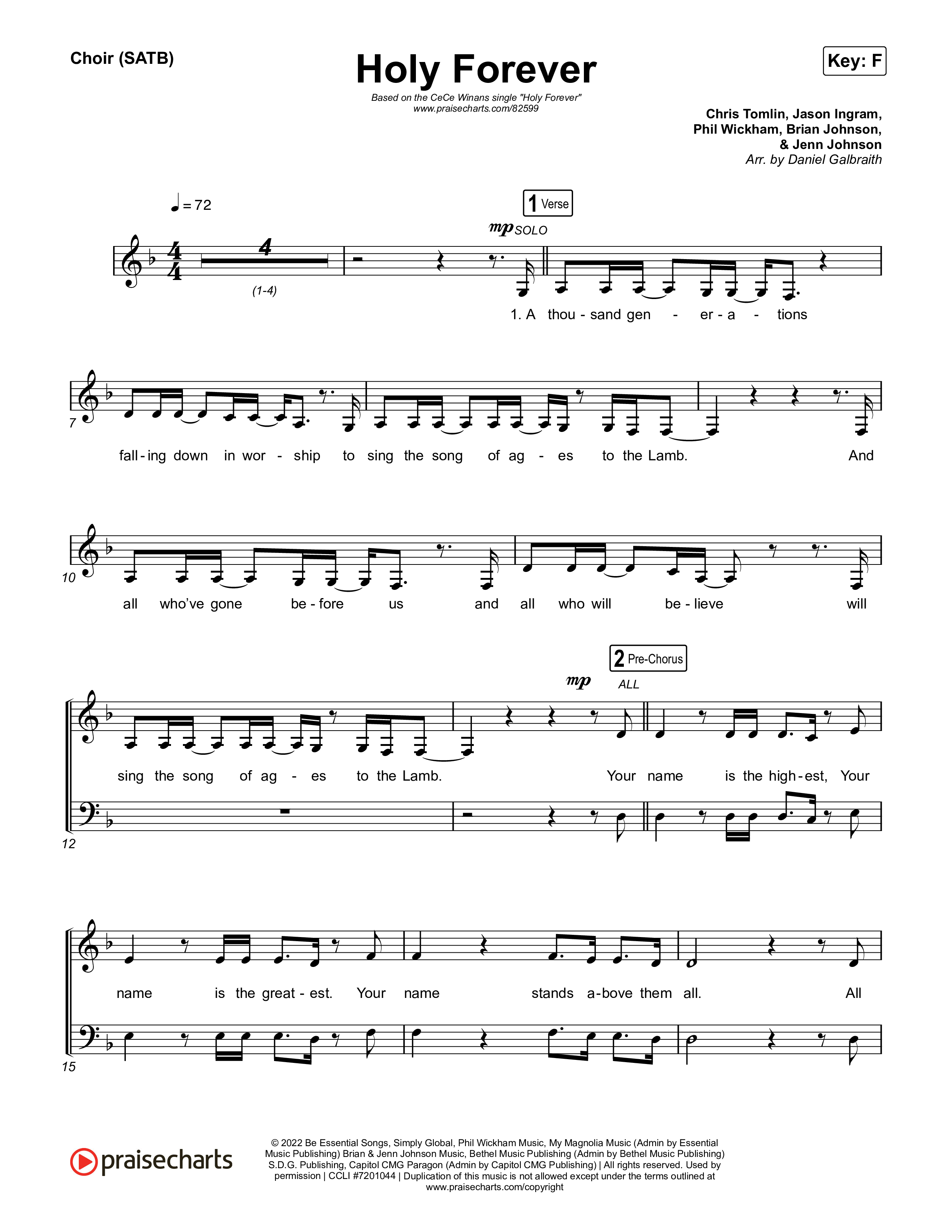 Download the Choir Sheet for Holy Forever (Single Version) by CeCe Winans, from the album More Than This. This song was arranged by Daniel Galbraith in the key of F, G, Gb.