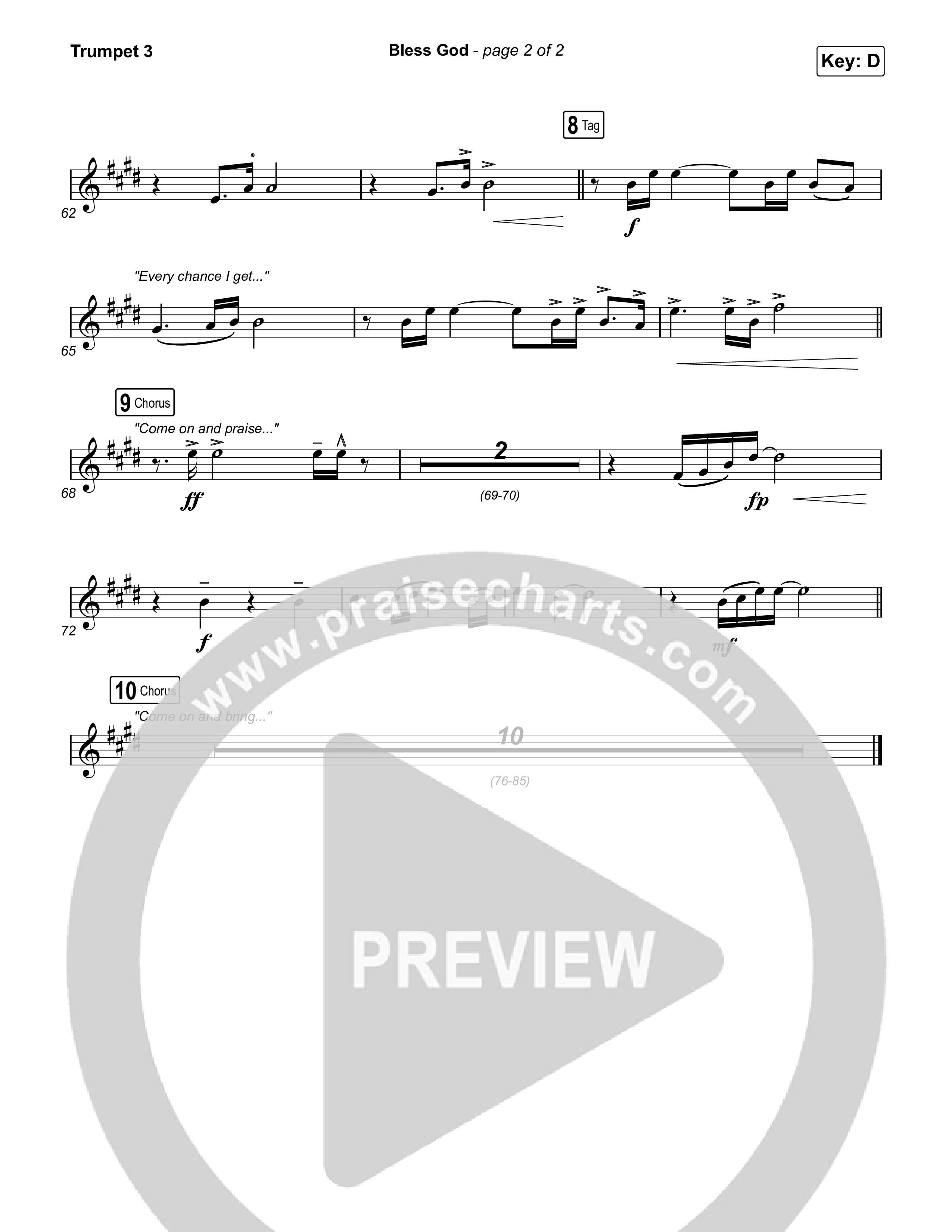 Download the Trumpet 3 sheet music for Bless God by Brooke Ligertwood, from the album Eight. This song was arranged by Grant Wall / Daniel Galbraith in the key of D, Eb.