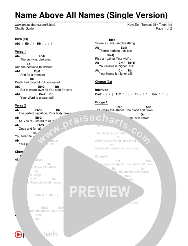 Name Above All Names (Single Version) Chords PDF (Charity Gayle)