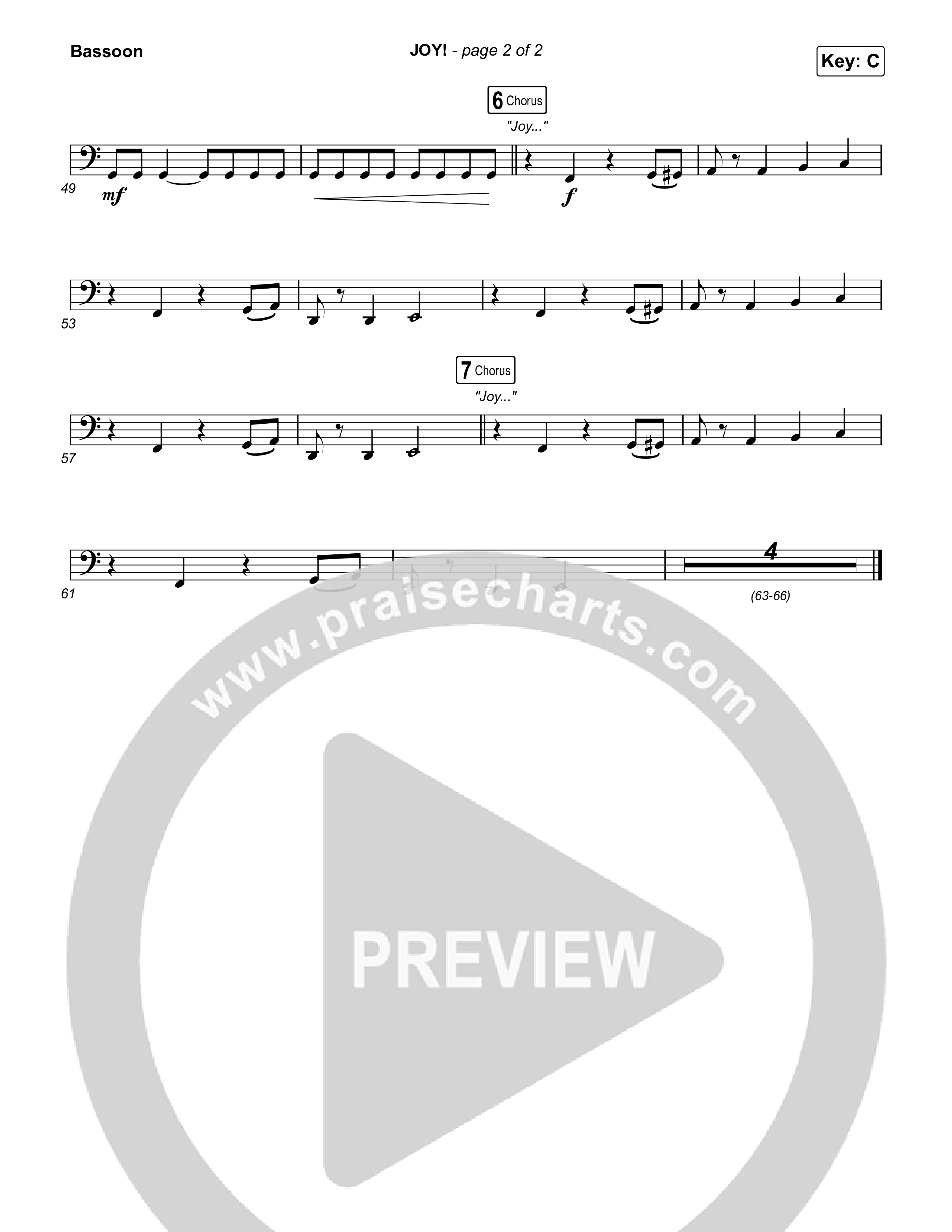 Download the Bassoon sheet music for JOY! by ELEVATION RHYTHM / Elevation Worship, from the album JOY!. This song was arranged by Daniel Galbraith in the key of Bb, C.