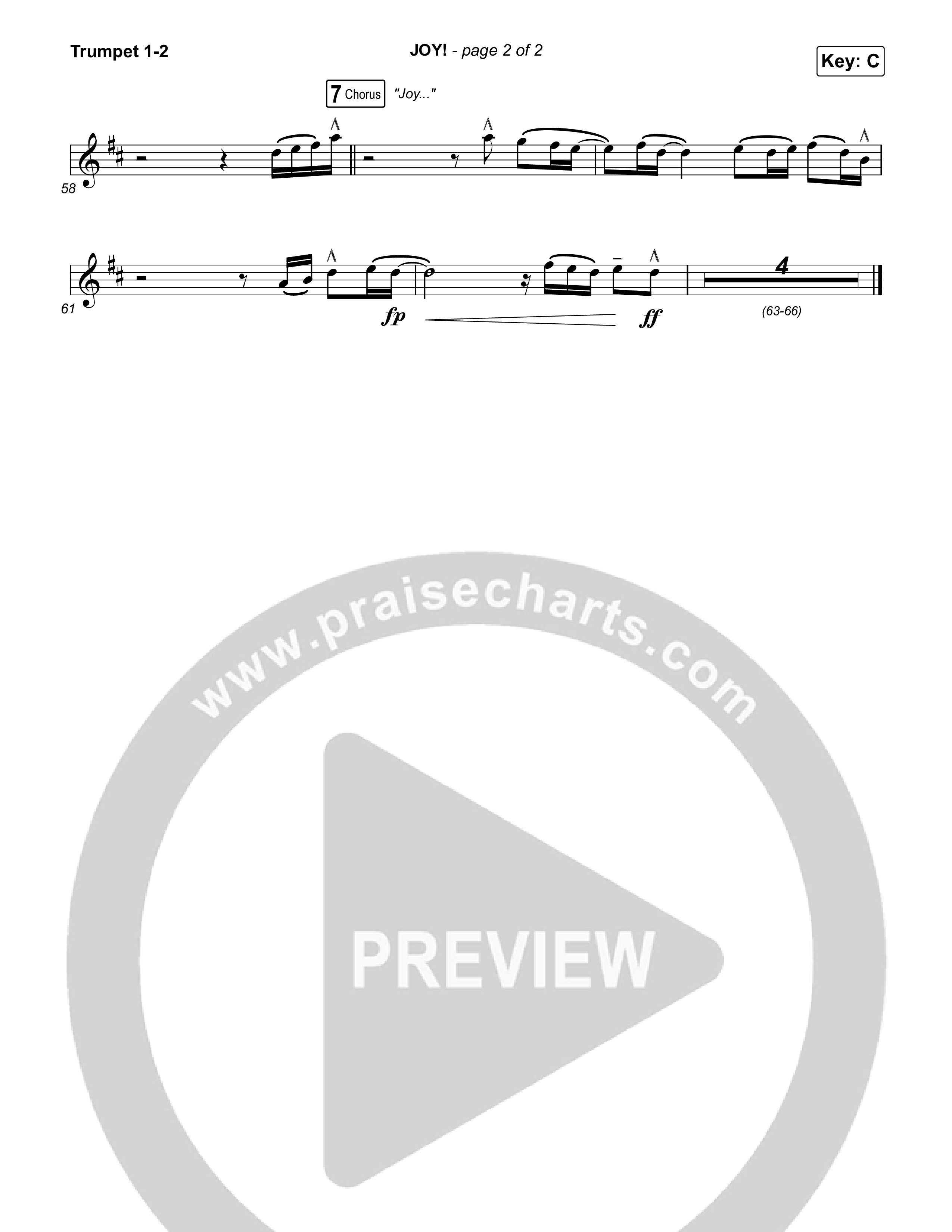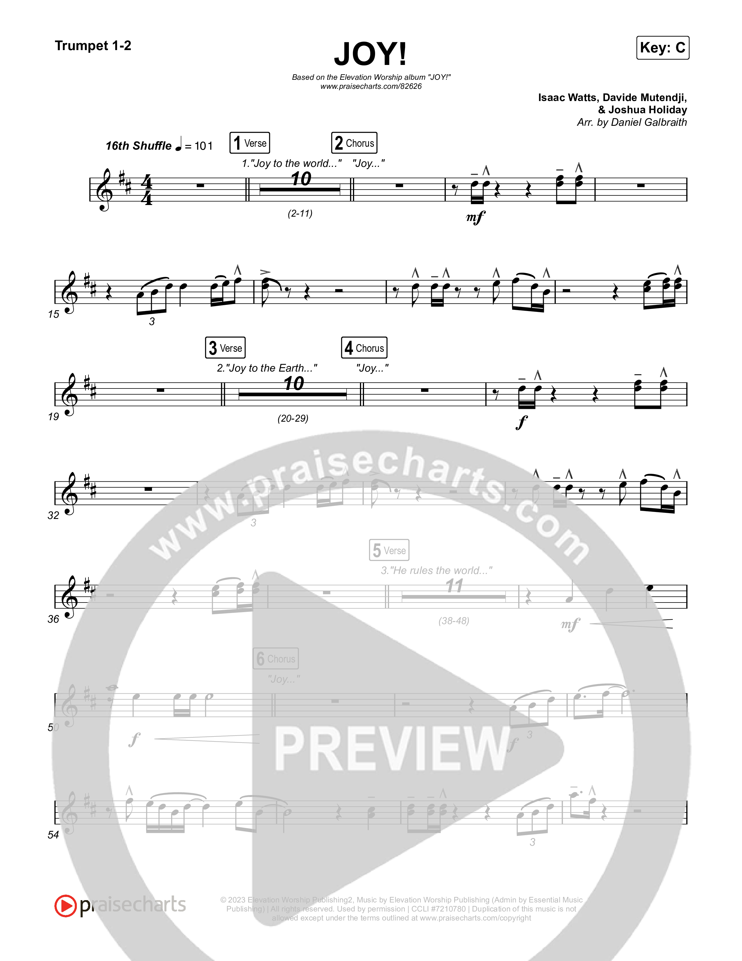 Download the trumpet sheet music for JOY! by ELEVATION RHYTHM / Elevation Worship, from the album JOY!. This song was arranged by Daniel Galbraith in the key of Bb, C.