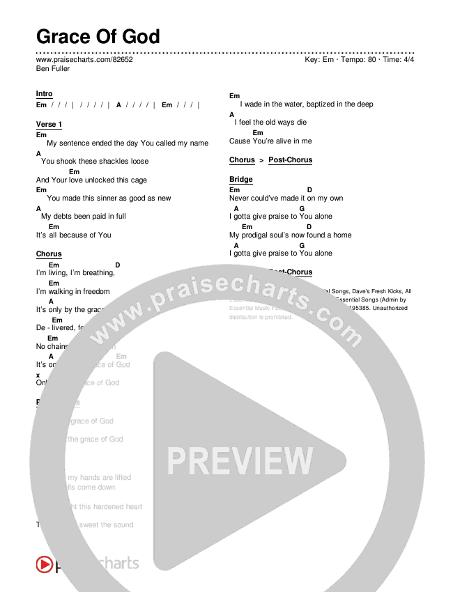 Download the PDF Chord Charts for Grace Of God by Ben Fuller, from the album Ben Fuller.