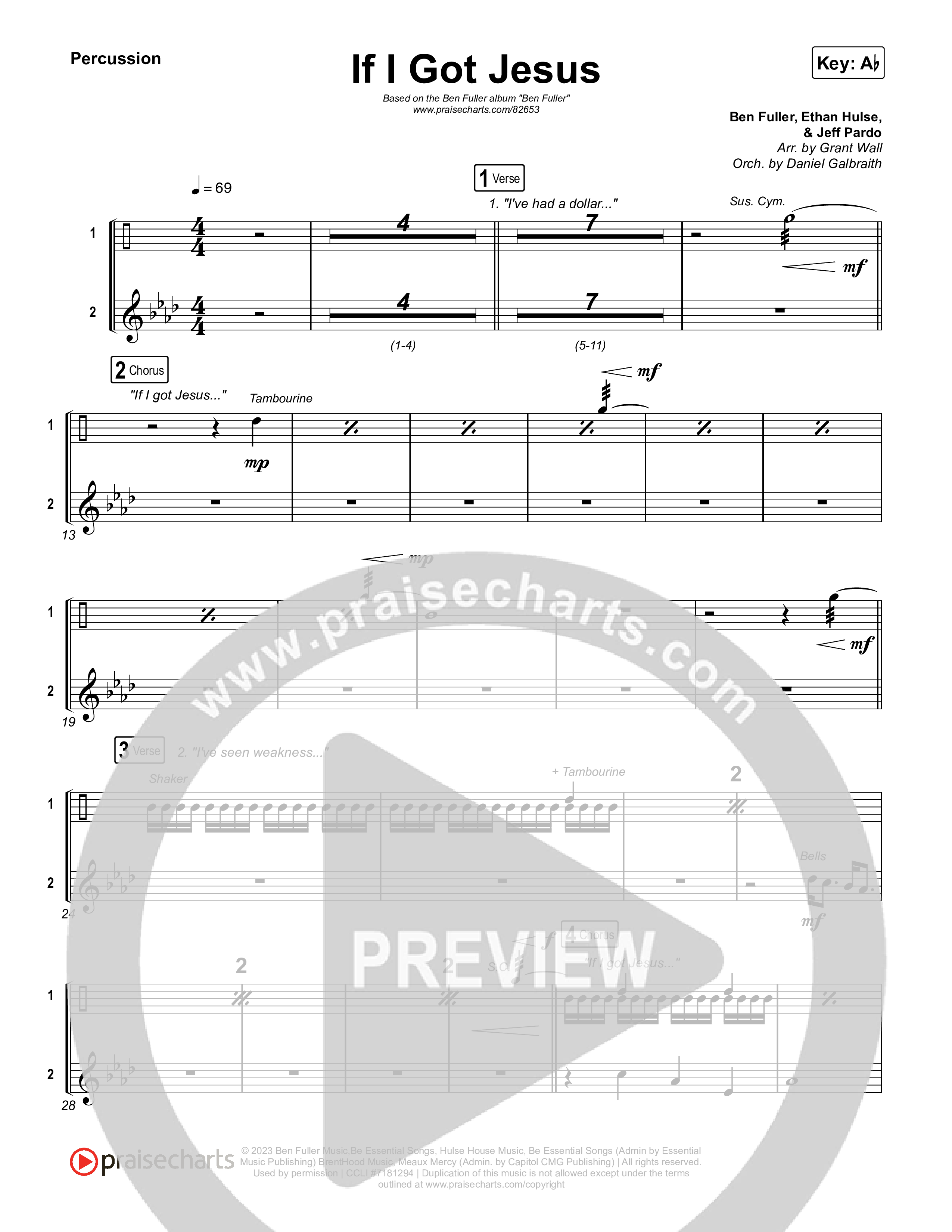 If I Got Jesus Percussion Sheet Music PDF (Ben Fuller)