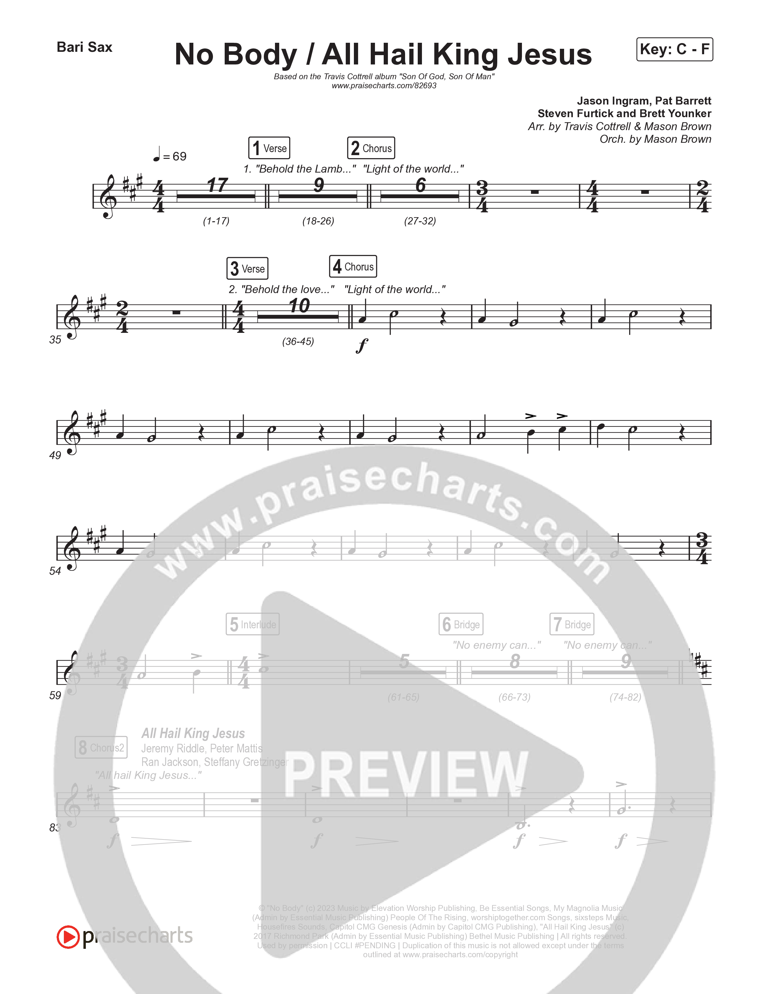No Body / All Hail King Jesus (Choral/SATB) Bari Sax Sheet Music PDF (Travis Cottrell / Skye Reedy / Arr. Mason Brown)