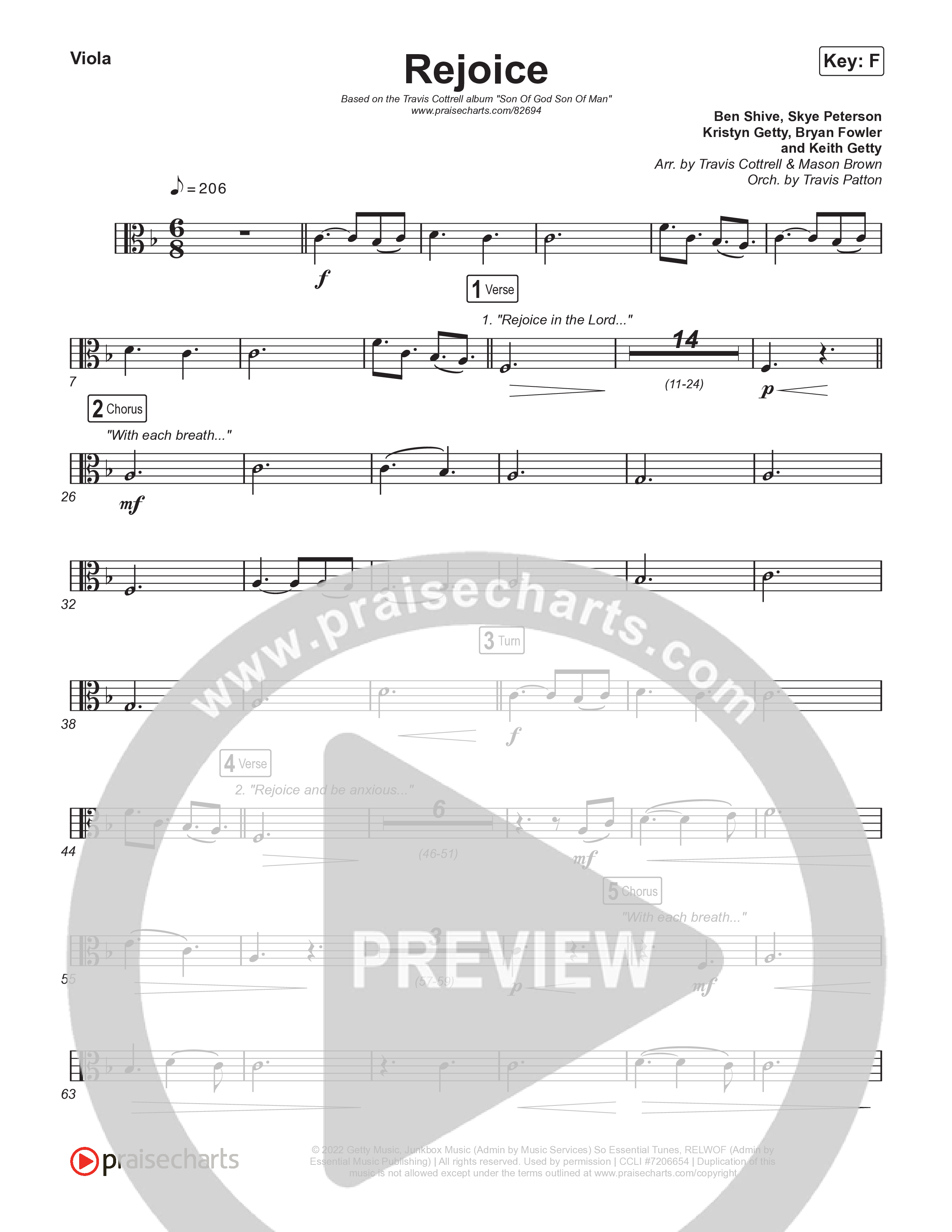 Download the Orchestration string parts for Rejoice (Choral/SATB) by Travis Cottrell / Arr. Mason Brown / Orch. Travis Patton, from the album Christus Victor: Hymns of the Gettys (Vol. 1). This song was arranged by Travis Cottrell / Mason Brown / Travis Patton in the key of F.